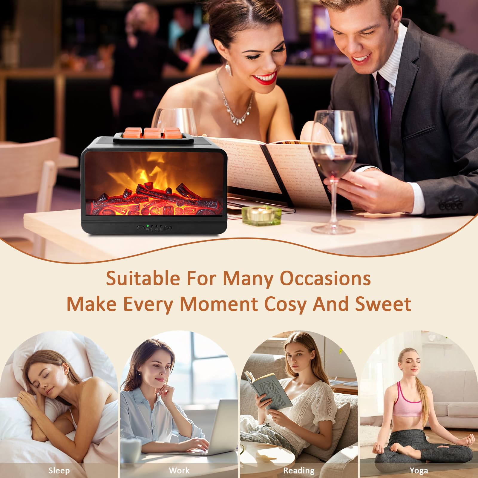 - 4 Smart Timers: The fireplace wax warmer features 4 timer settings-continuous/2H/4H/8H, catering to your various needs during work, reading, yoga, or sleep. Set the timer according to your preference, and the wax warmer for scented wax will automatically shut off after the specified time, providing peace of mind. The Scented Wax Melter can be used as a stand-alone wax melter or as a night light, and it offers 3 lighting modes: strong, weak, and breathing light