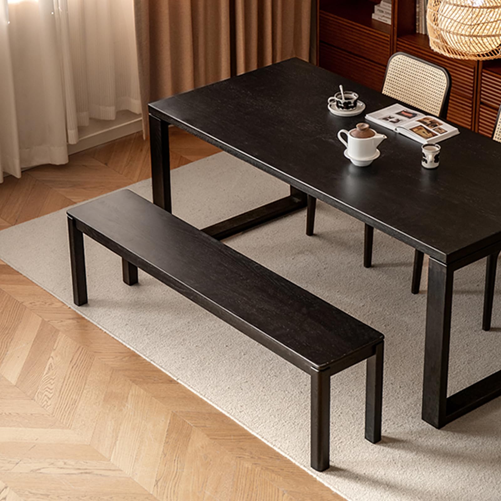 - Premium Solid Oak Construction – This 47.2'' dining bench is crafted from FAS-grade 100% solid oak wood, featuring a stunning black finish that highlights the natural oak wood grain, ensuring long-lasting durability and a touch of elegance for any space.
