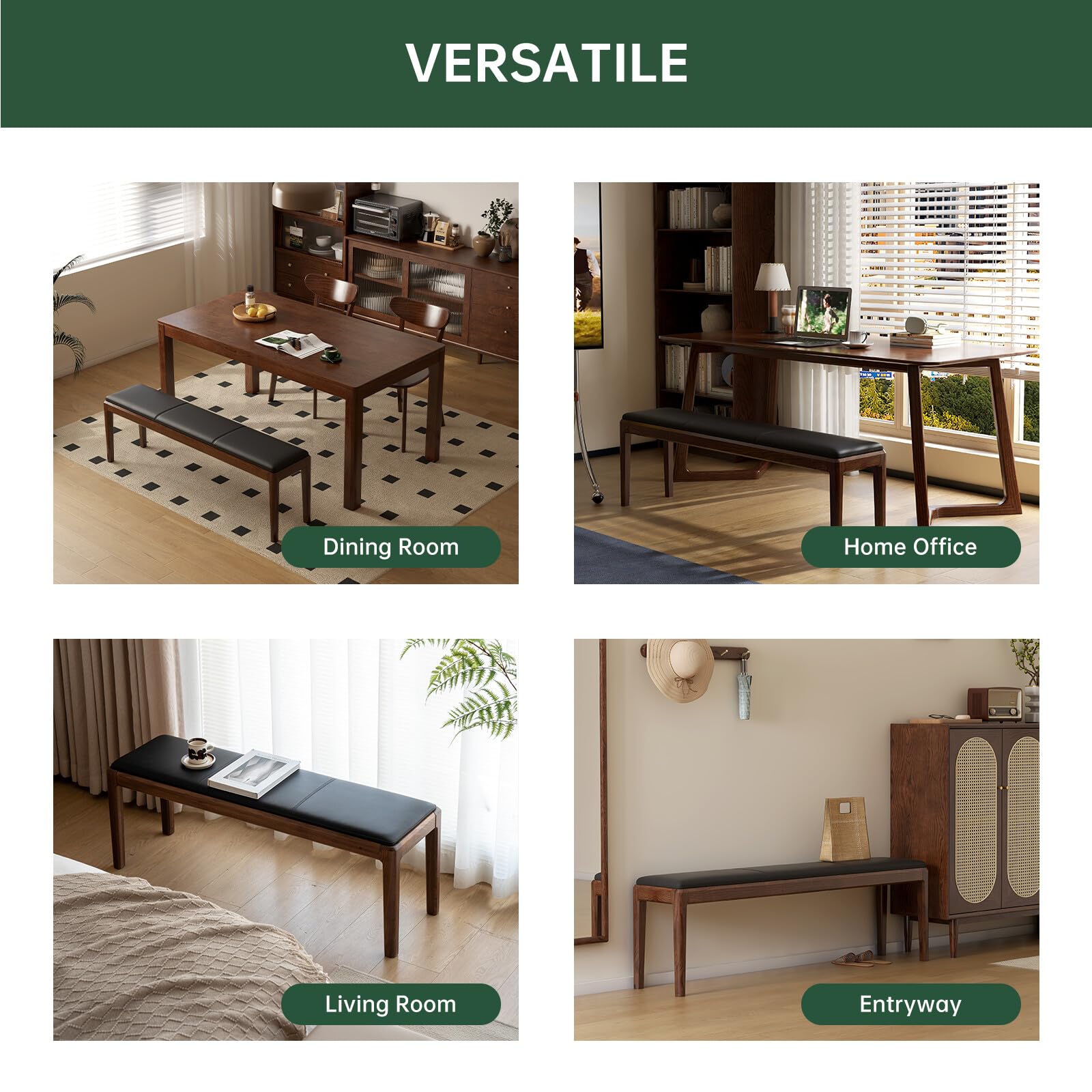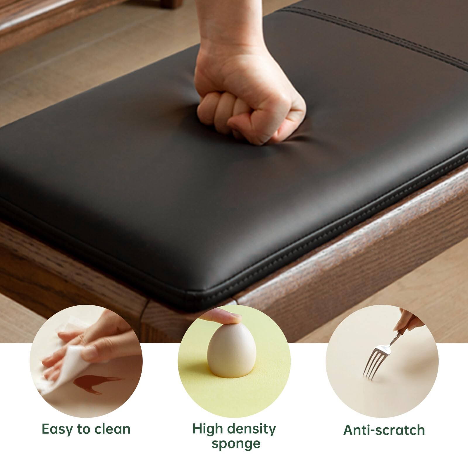 - [Elegant Design] Indoor leather dining bench owns solid oak oak's natural wood grain in bench leg frame are visually light and modern, and the excellent tailoring and high-grade materials make it aesthetically pleasing. It can also be placed in a variety of occasions, and it is a good choice to be placed at the end of the bed or entryway or at dining table.