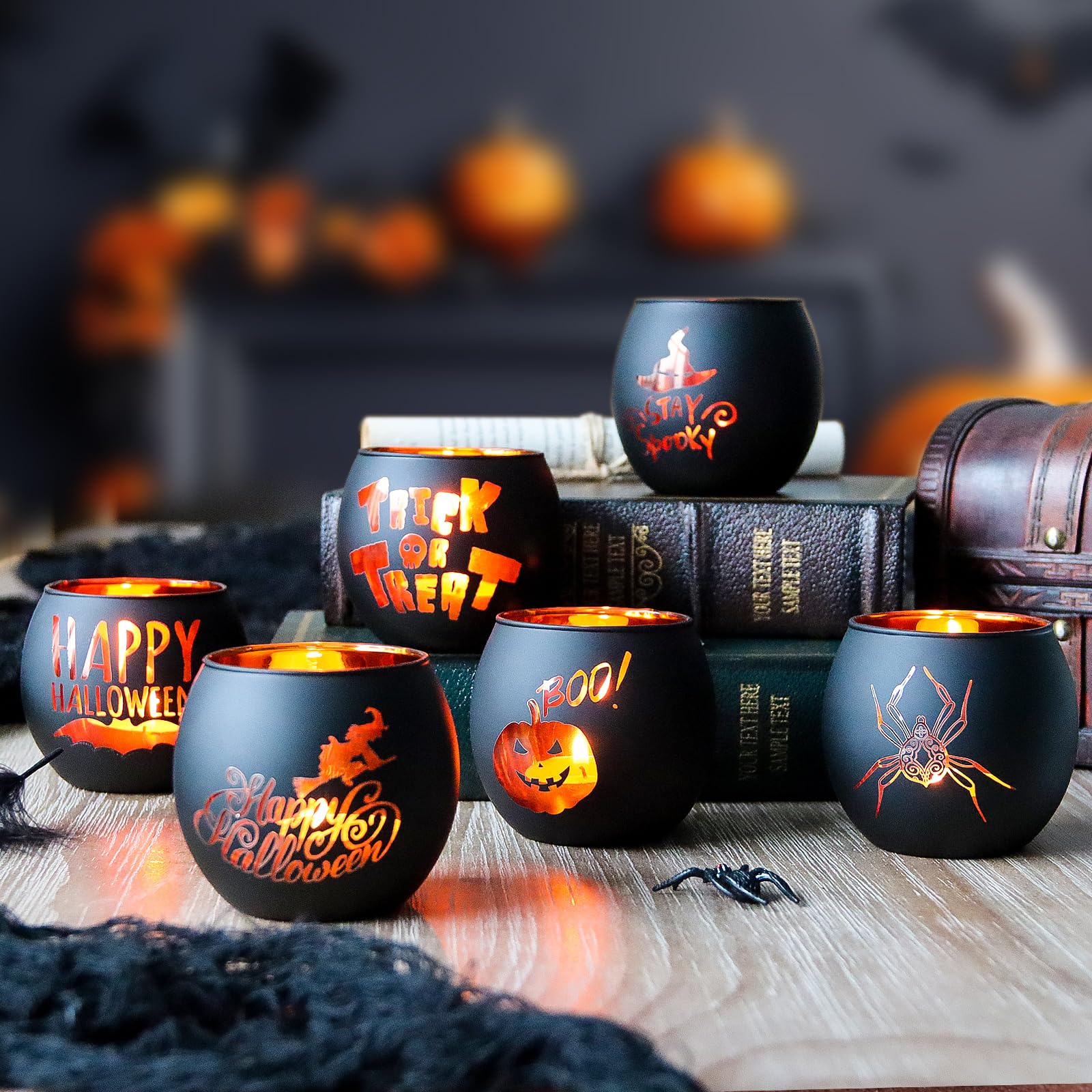 - Glass Halloween Candle Holder: Each glass Halloween tealight holder is crafted from durable glass, ensuring long-lasting use and a brilliant shine that enhances the Halloween atmosphere. The high-quality material ensures that these tea light holders can be used year after year. The 6pcs candle holder can also as a Halloween gift for friends