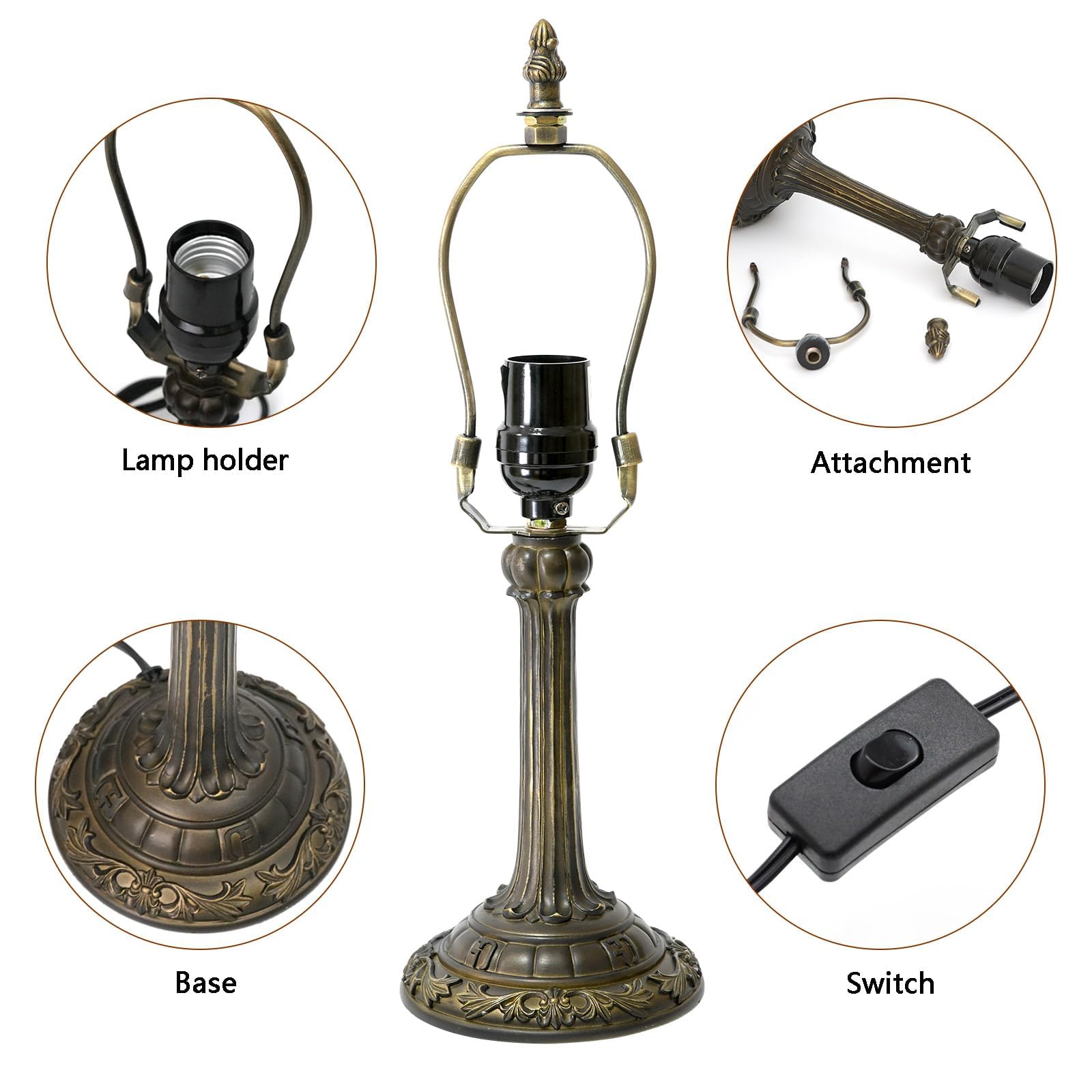 - stained glass lamp:The base is made of resin. Sturdy and durable, the total weight is about 0.6KG. Power cord length is 1.55m, easy to install - easy to assemble and can be completed without any tools. Comes with 1 E26 bulb 12w 3000K.