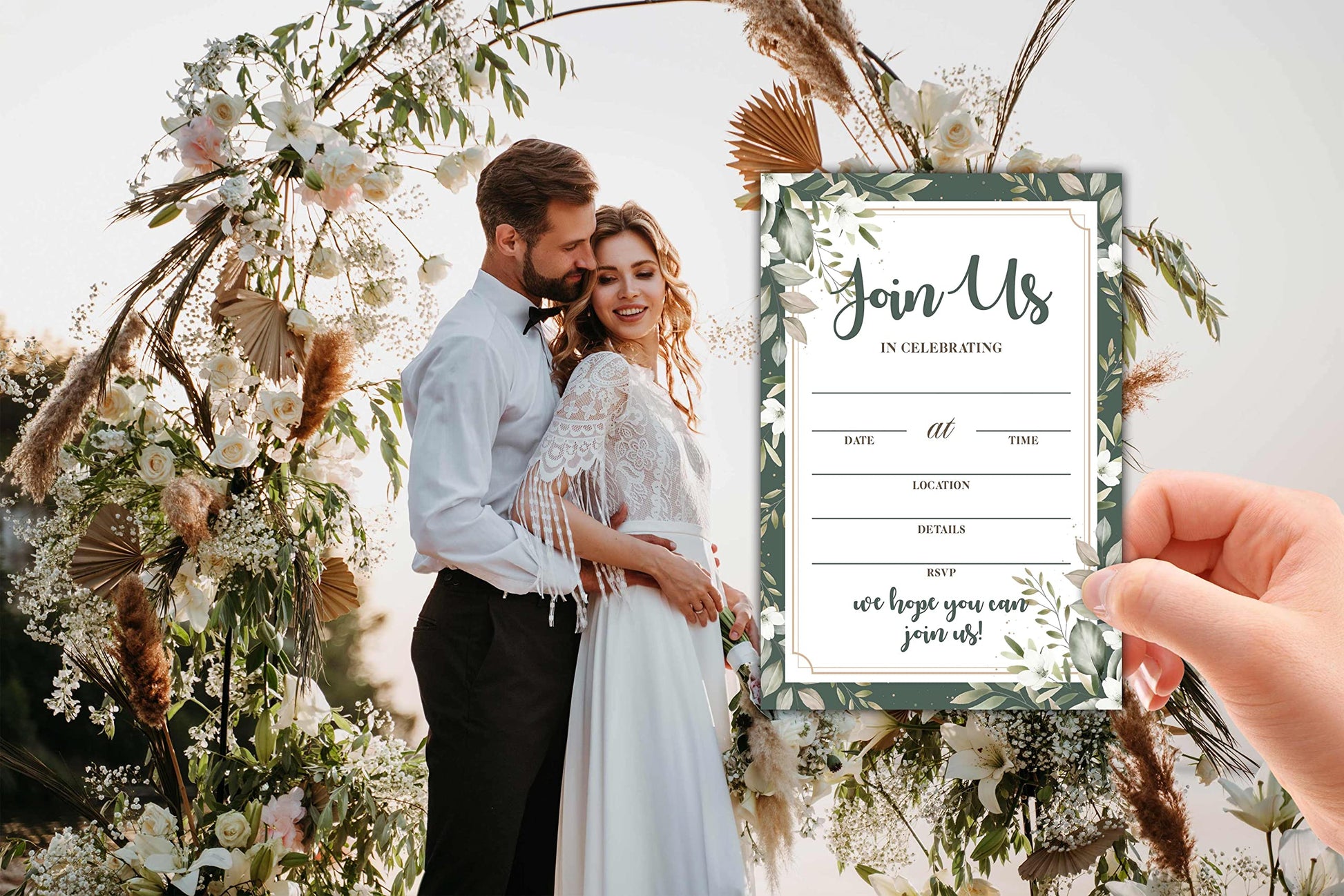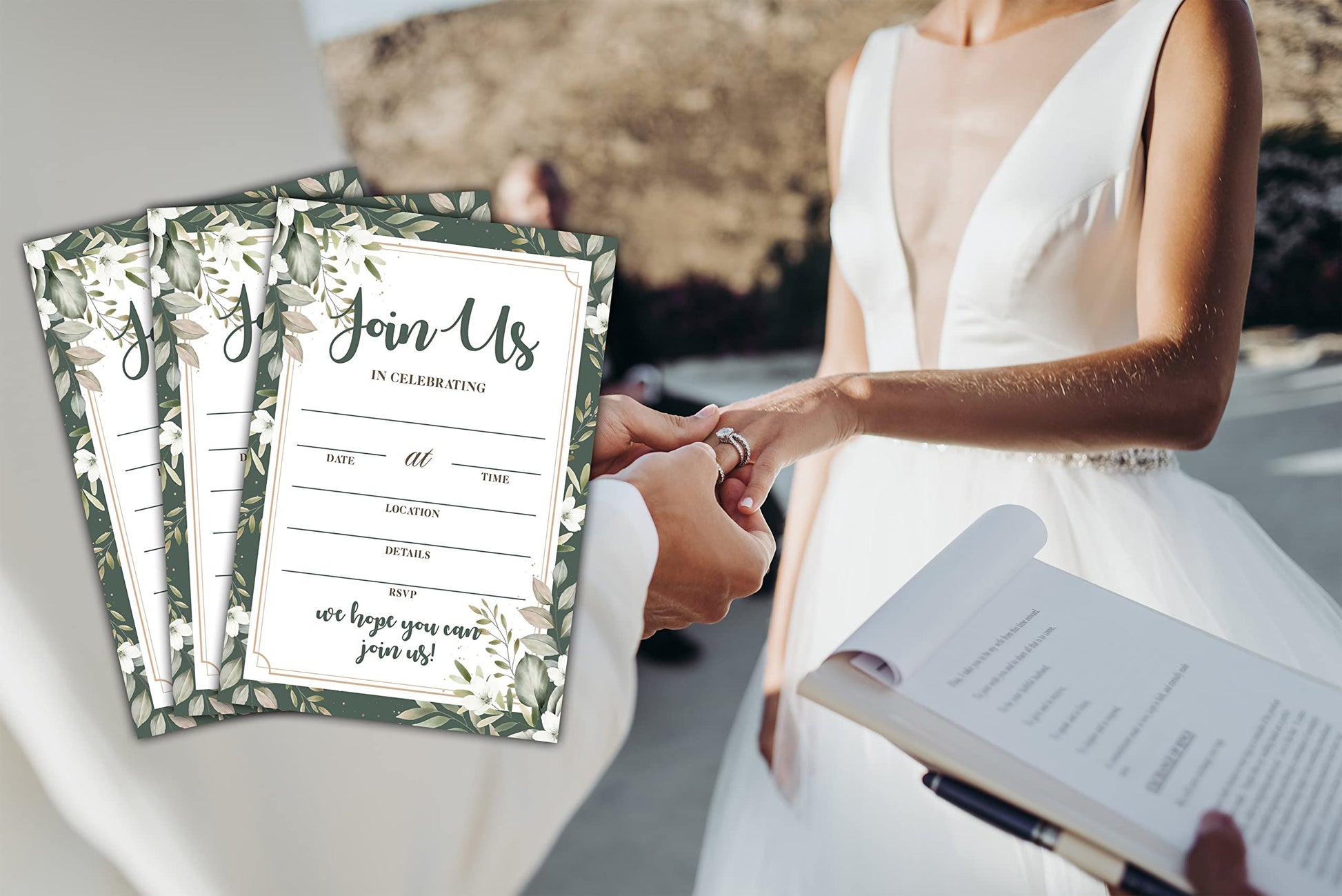 Wedding Reception Invitation, Greenery Bridal Shower Fill-in Invites Cards, Beautiful and Minimalist Wedding Planning Supplies,03(25 Pack)