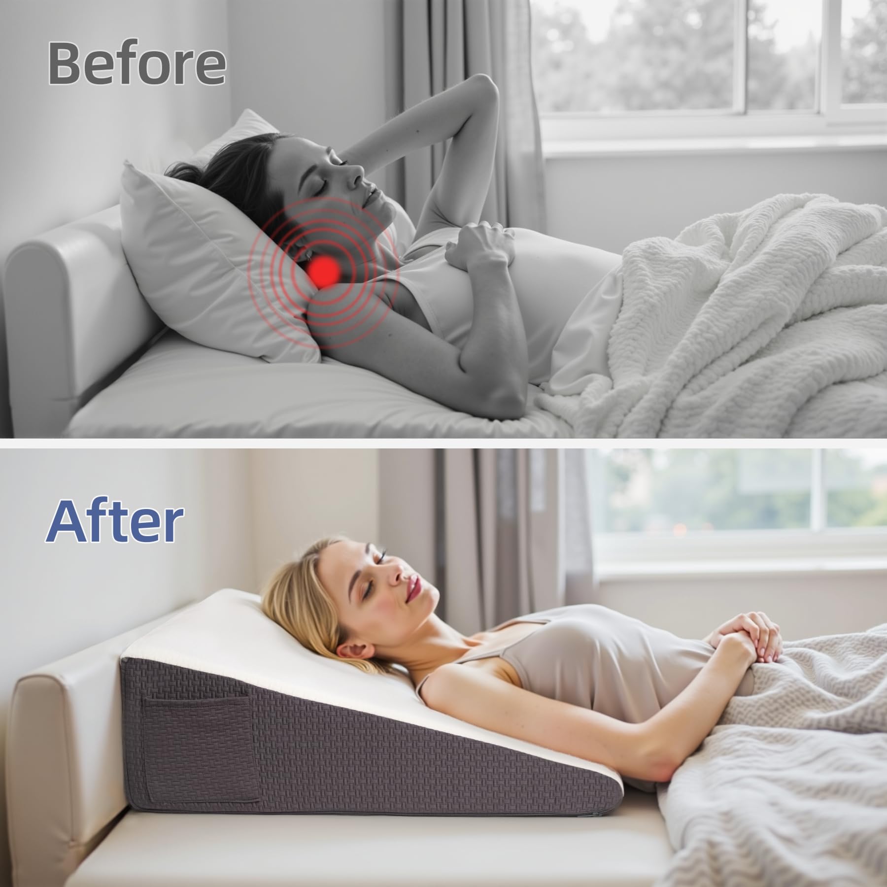 - Two Special Storage Pockets:Ensure that your essentials, such as remotes, phones, and tissues, are always within reach. Our wedge pillow with different opening directions, no matter if you are sitting or sleeping, you can get your phone or remote controls.