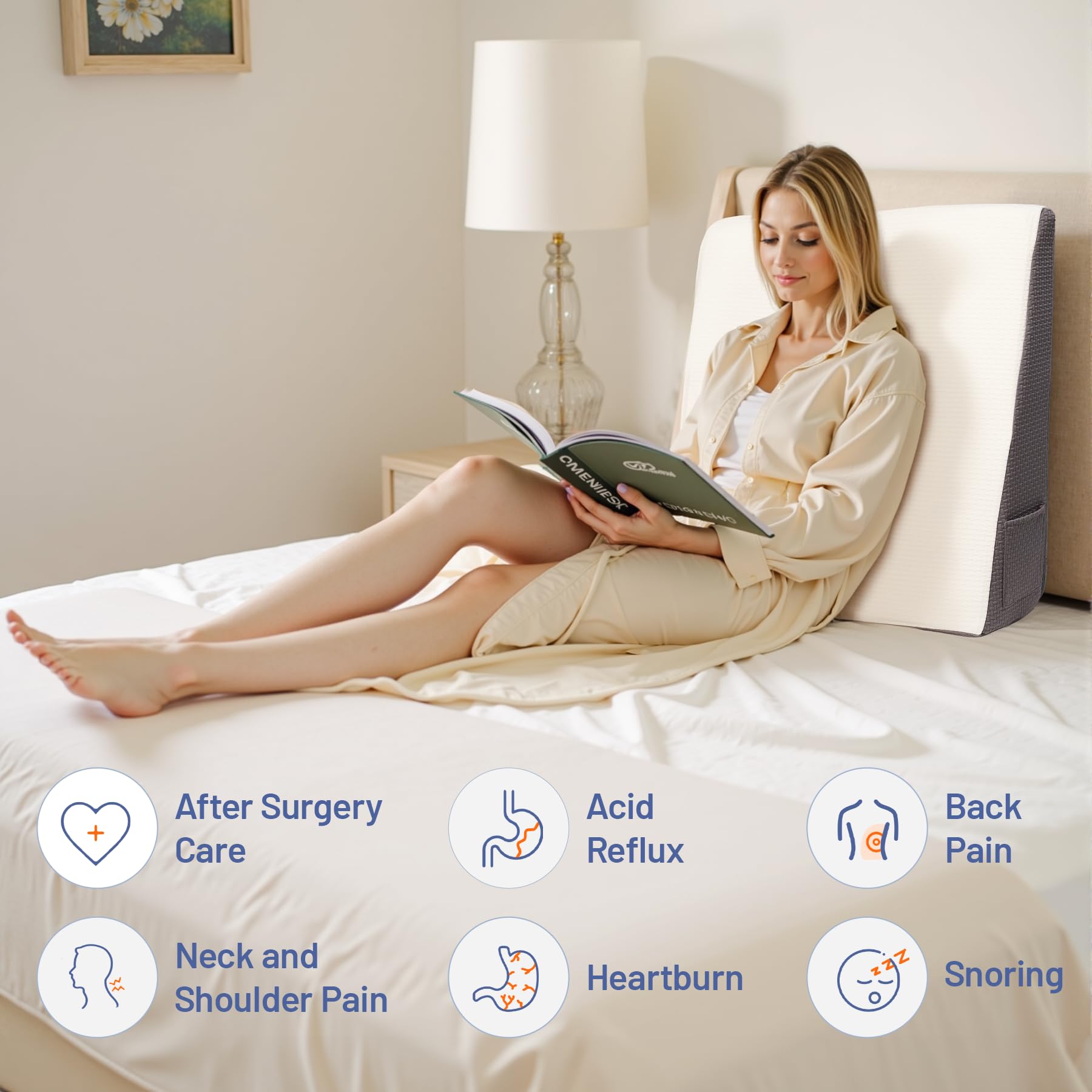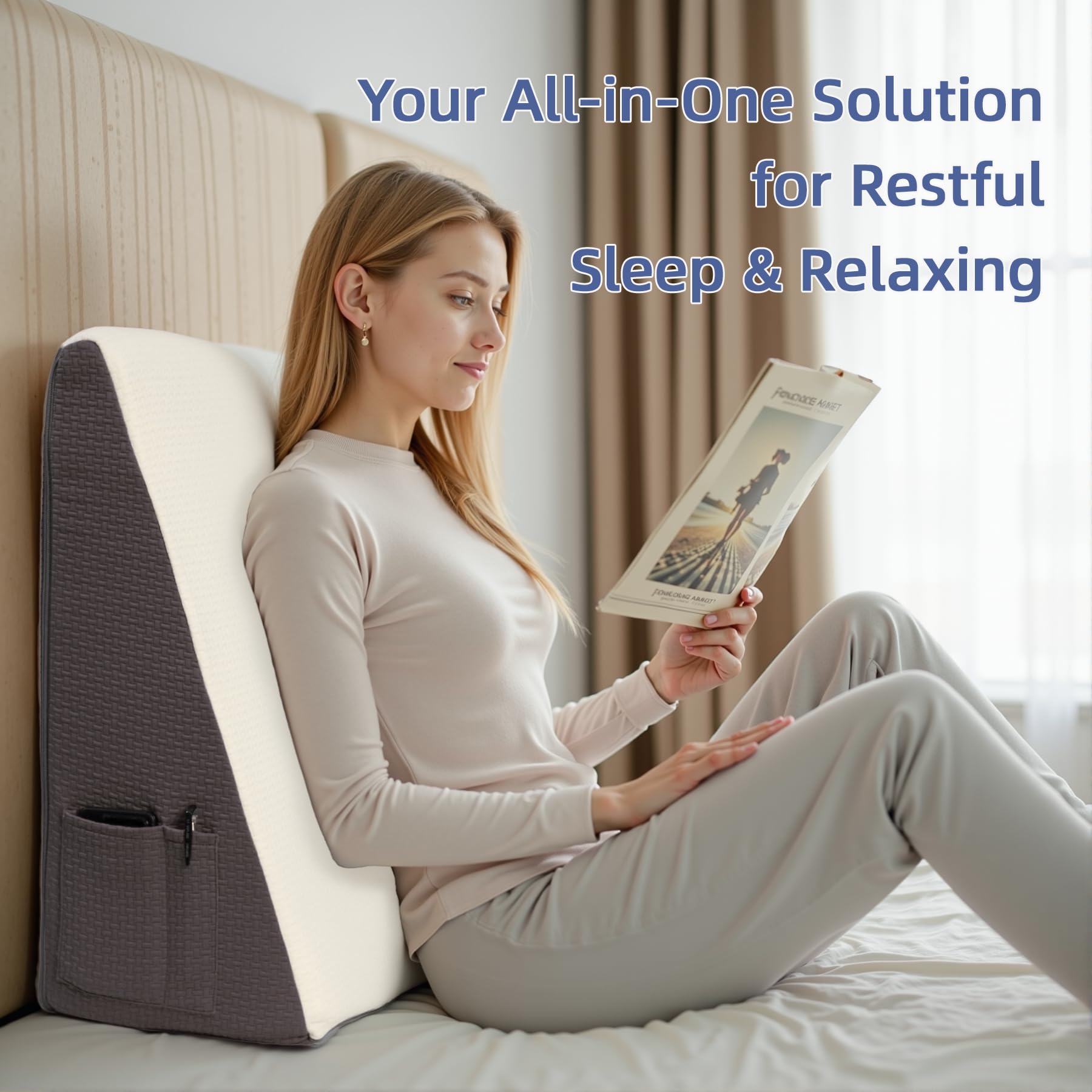 - Versatile Comfort for All Needs: We offer 3 sizes to meet different needs—please choose the suitable one. Use as headrest or backrest, this wedge pillow offers firm support for reading, relaxing or sleeping. Helps relieve reflux, snoring and body pain.