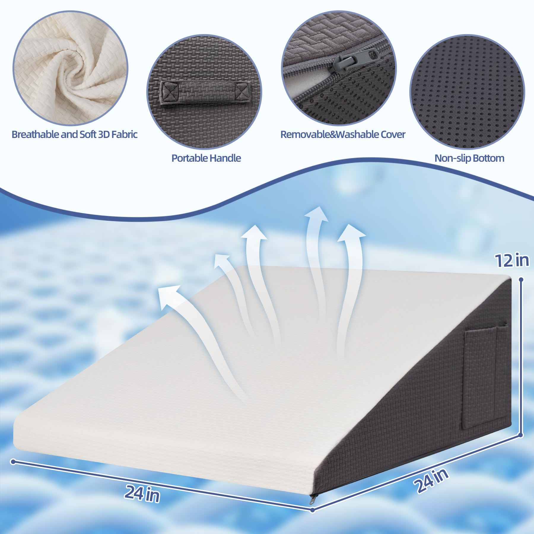 - Removable & Washable Cover:Enjoy a comfortable sleep with our bed wedge pillow featuring a breathable and removable cover and the wide-open zip closure that is easy cleaning. The soft and breathable removable pillowcase of this wedge pillow allows for convenient machine washing and maintenance.