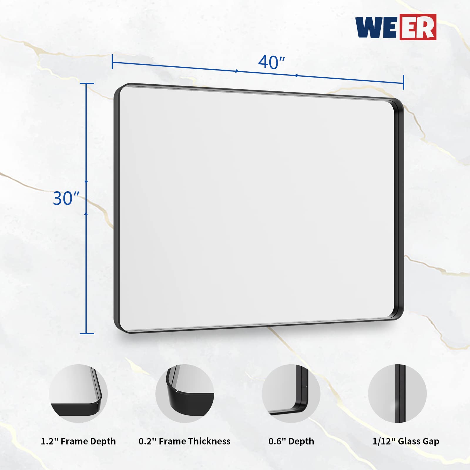 - 【Durable Black Metal Framed Mirror】: WEER black bathroom vanity mirror is made of premium alumium alloy frame, which is anti-rust and non-deformed. Practical rectangle rounded corner mirror with simple classic clean line features the modern and industry style;
