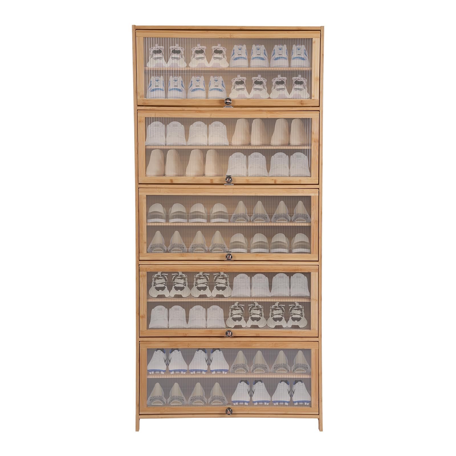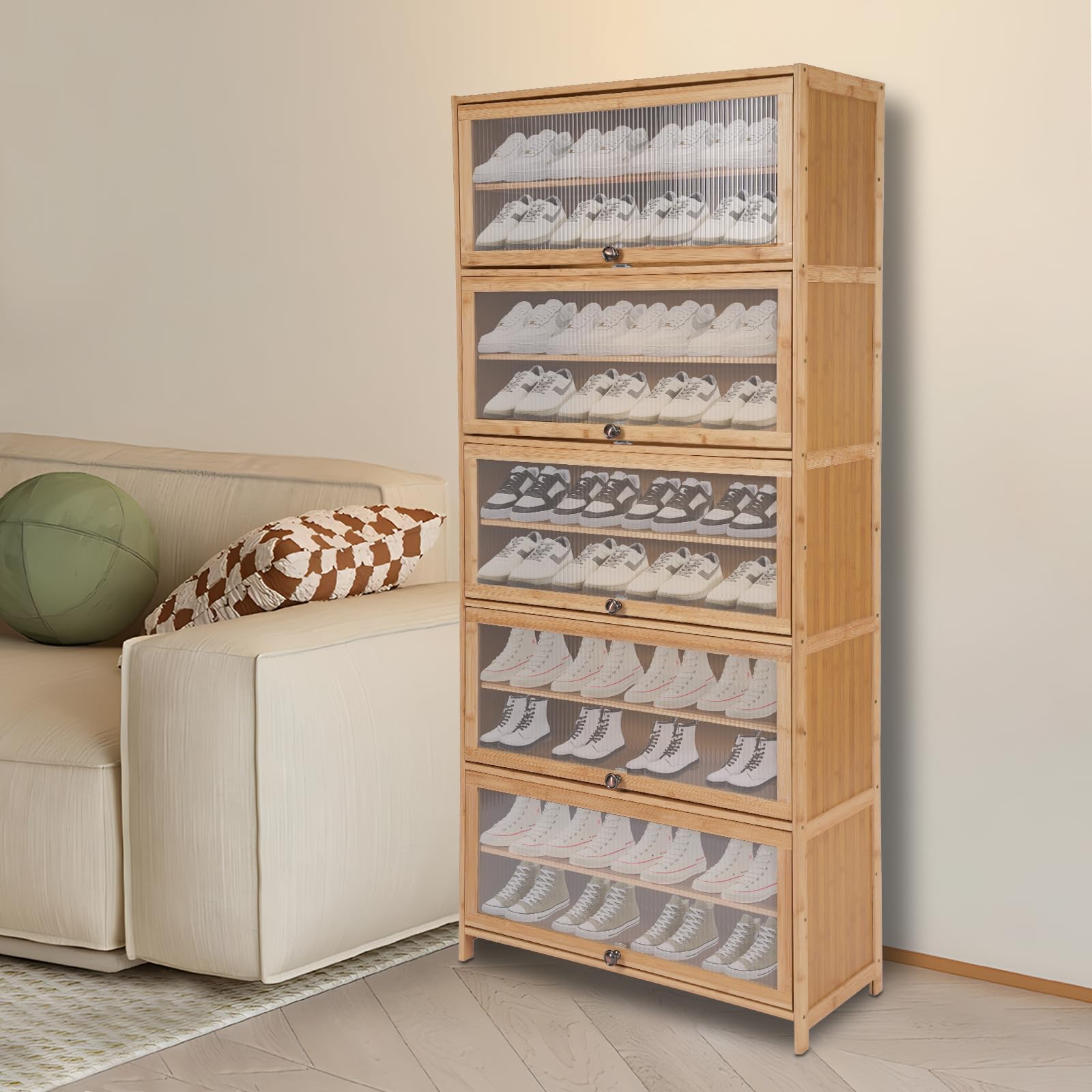 Weglae 10 Tiers Shoe Storage Cabinet,Bamboo Shoes Shelf Organizer,Shoe Rack with Transparent Acrylic Cabinet Door,Free Standing Shoes Shelf for Entryway Bedroom,31.5 * 12.6in,Brown (Brown)