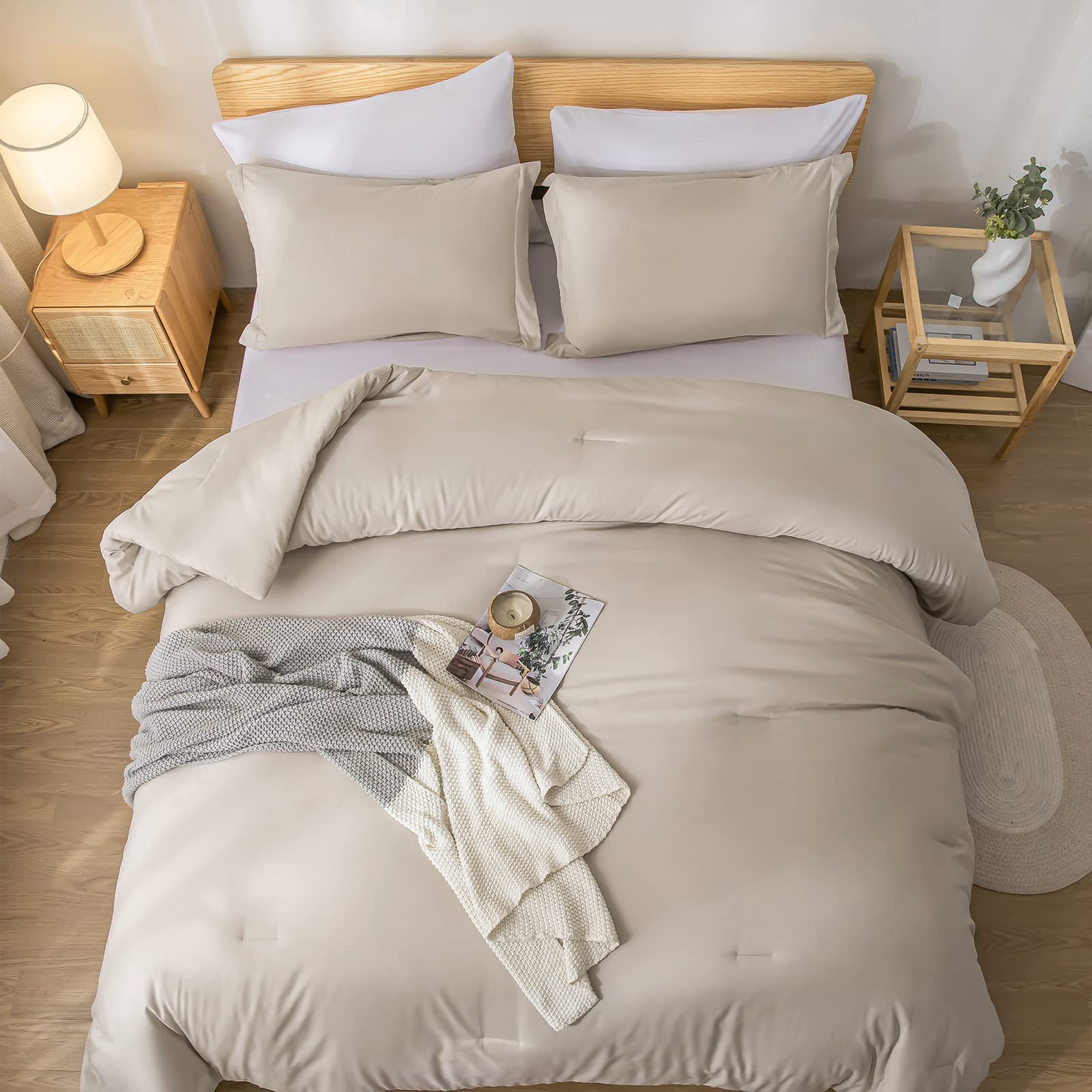 weigelia Queen Comforter Set 7 Pieces Oatmeal Comforters Queen Size Soft Fluffy Bedding Comforter Set with Fitted Sheets, Flat Sheets, Pillow Shams, and Pillowcases