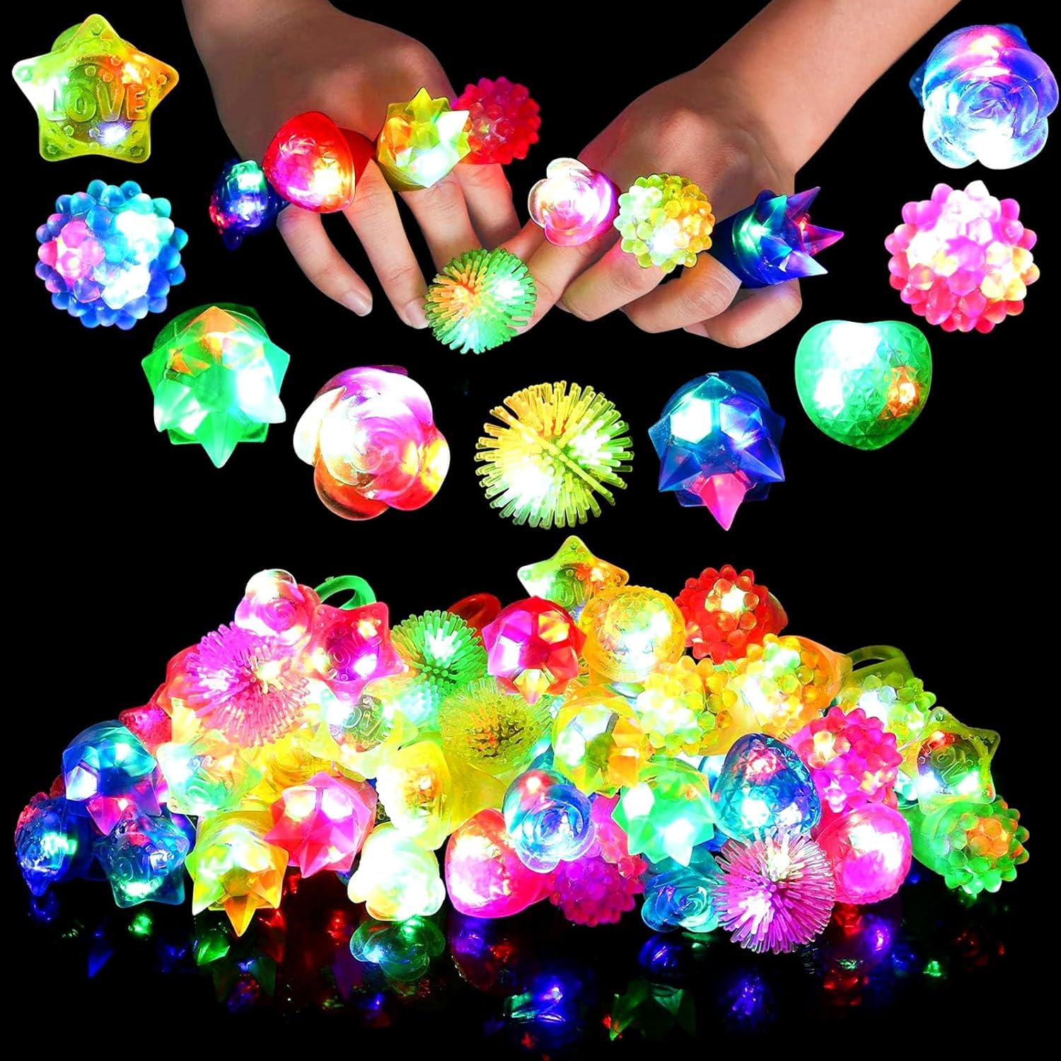 - SAFETY RINGS & VARIOUS OCCASIONS---We always take safety as the top priority, each LED light up ring can meet the highest standards. We provide safe glow toys for children and adults over the age of three.They are suit for any occasions, such as Christmas, Easter egg fillers, Valentines,Halloween, weddings, LED party, glow party, birthday party, and any other cheerful events.