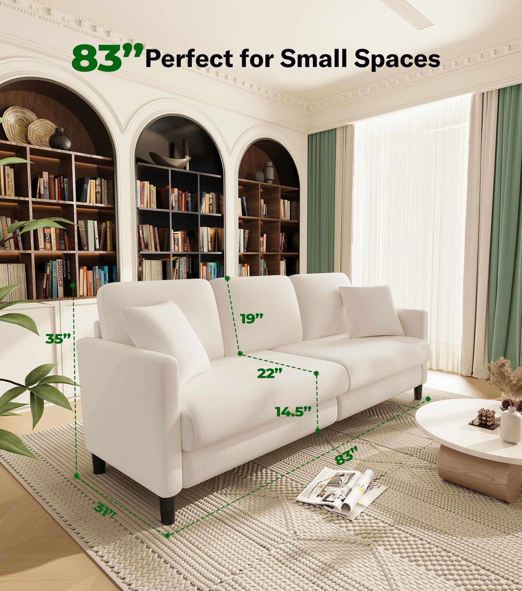 - 【COZY HAVEN FOR COMPACT SPACES】83" long and 35" wide, this comfy couches for living room is perfect for both small and large spaces. Whether it's a living room, apartment, balcony, study, or loft. Our love seat couches also adapt to any home style, whether modern, simple, or traditional, and create a warm small space.A thoughtful gift for any occasion, this small sofa adds warmth and charm to any living room, turning it into a relaxing haven for family and friends to enjoy together.