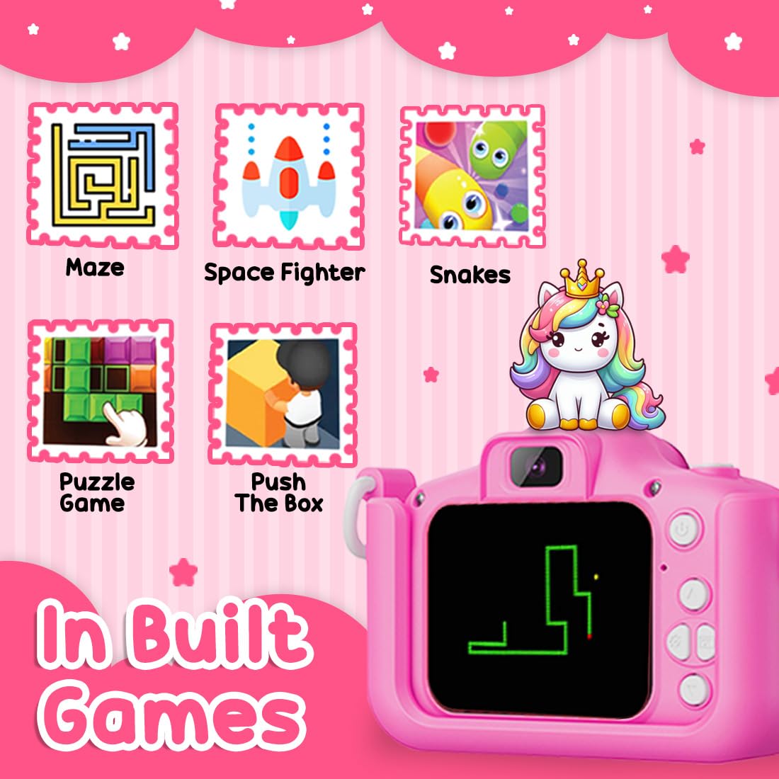 - MULTIPLE FEATURES: The mini camera for kids features multiple functions, including a camera, MP3 player, video recording, games, and a gallery. It’s an all-in-one device that keeps kids entertained, perfect for toys for girls aged 5-7. A creative digital companion for young photographers, making it an ideal gift for 6 year old girls.