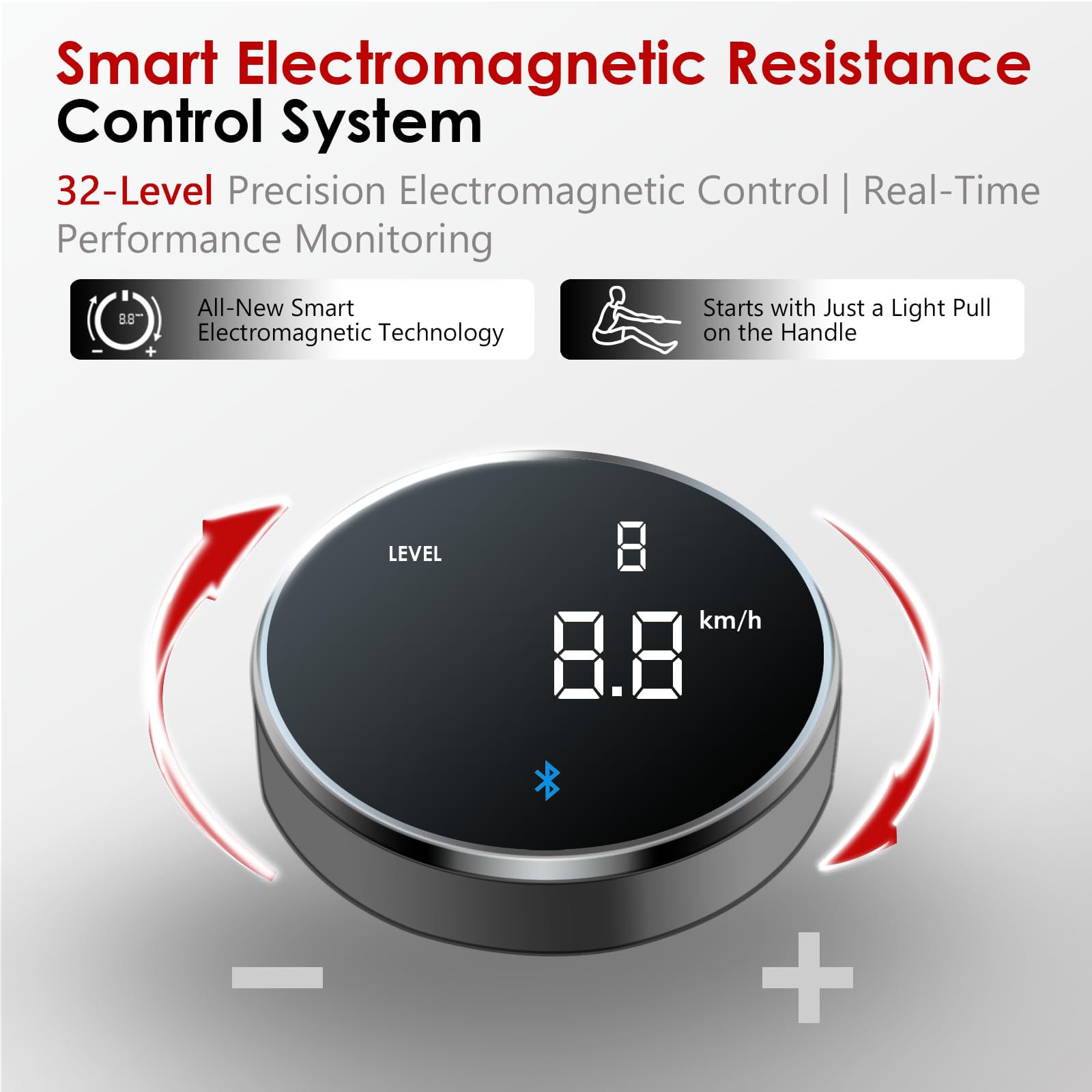 - [Upgraded 32 levels strong magnetic resistance] The upgraded rowing Machines for home features an electromagnetic flywheel provides more stable and sufficient power than traditional magnetic resistance, ensuring a more efficient and smooth exercise experience. With 32 adjustable resistance levels, it suits both beginners and professionals for effective workouts.