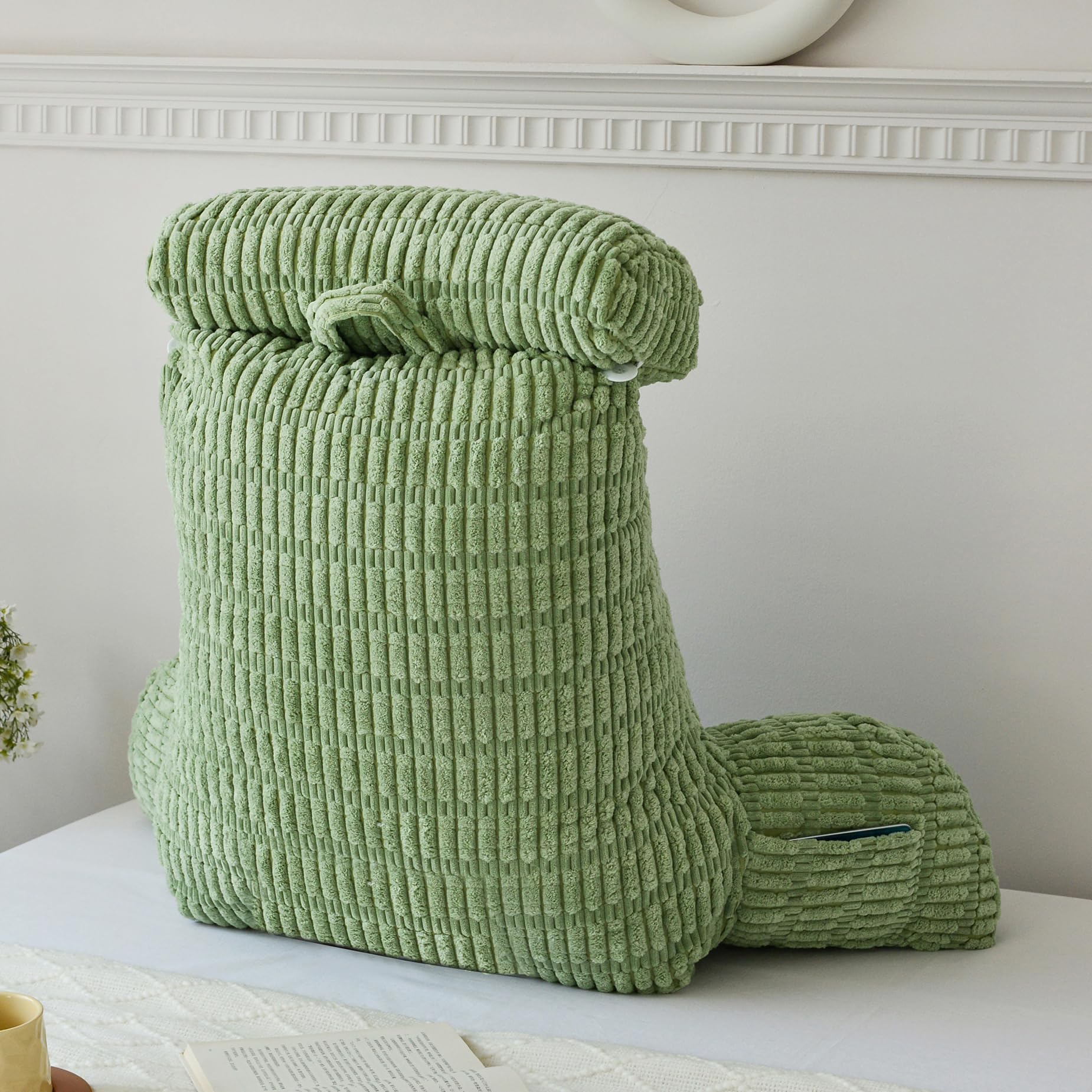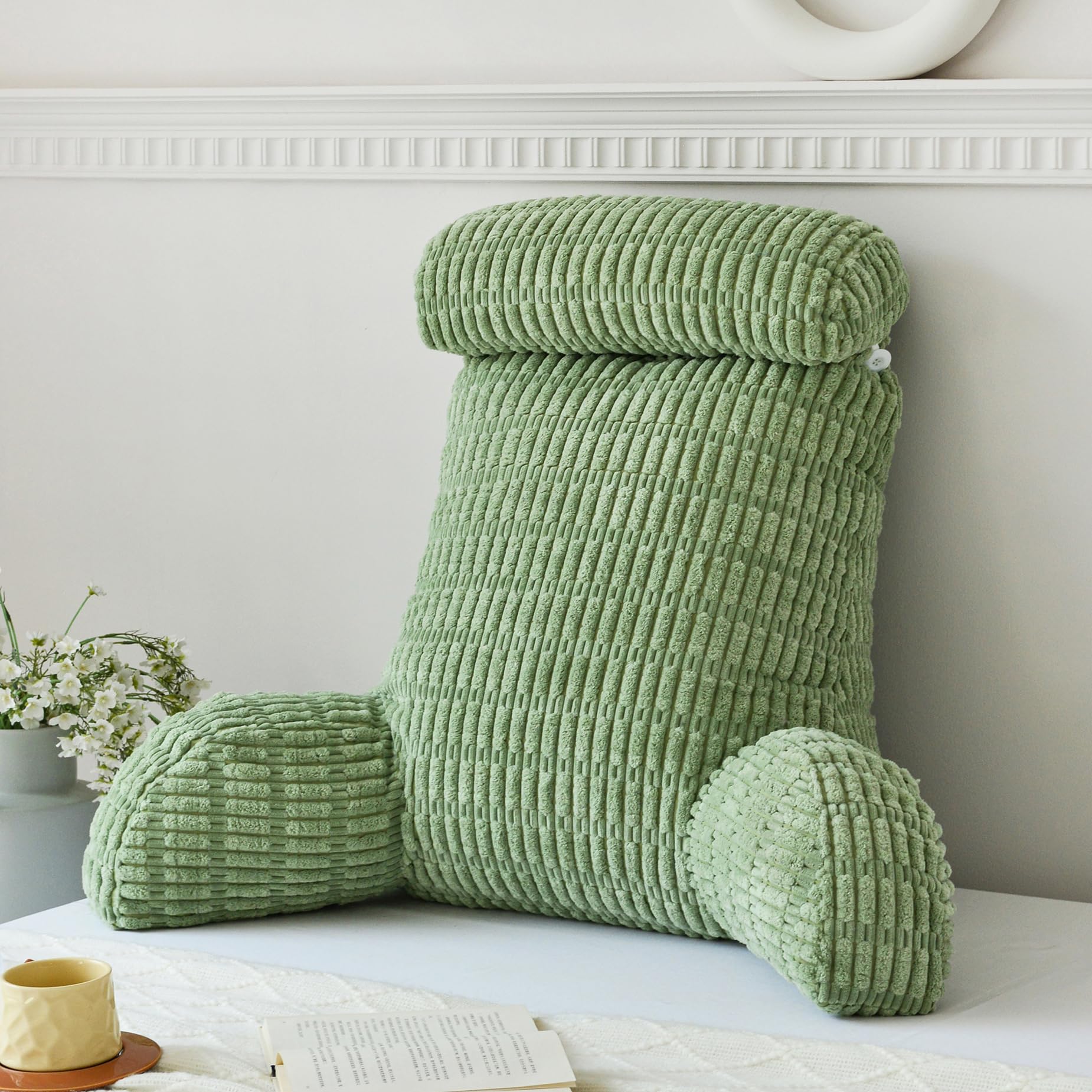 WERDIM Reading Pillow with Detachable Neck Roll, Large Back Pillow for Sitting Up in Bed Couch, Adult Bed Rest Pillow with Arms for Reading/Watching TV/Gaming, Sage