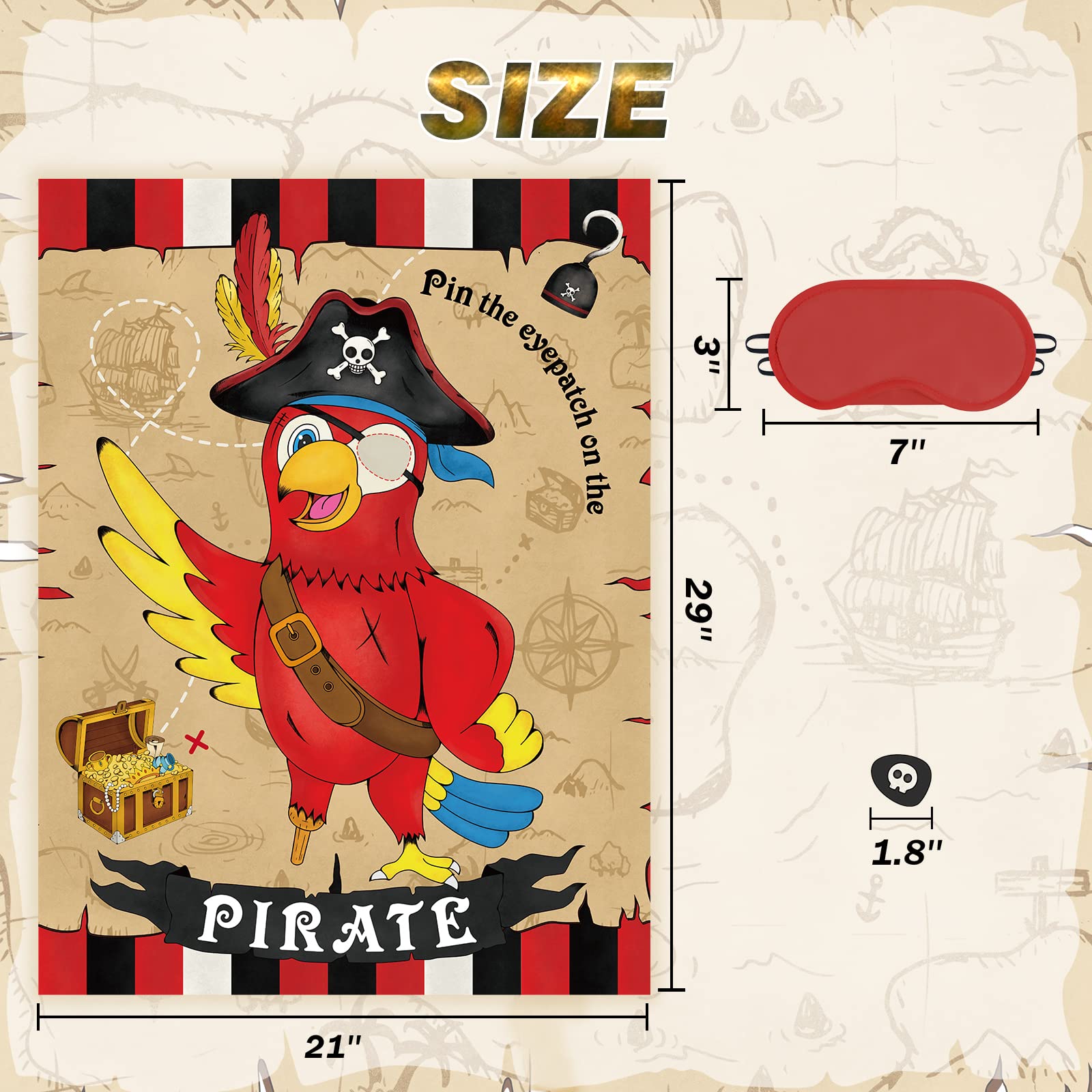- PACKAGE INCLUDE - 1 x pirate poster 28'' x 21'' , 24 x reusable eye patch stickers in 6 colors, 1 x soft blindfold, and 20 x glue points. It's a ideal choice for pirate theme party.