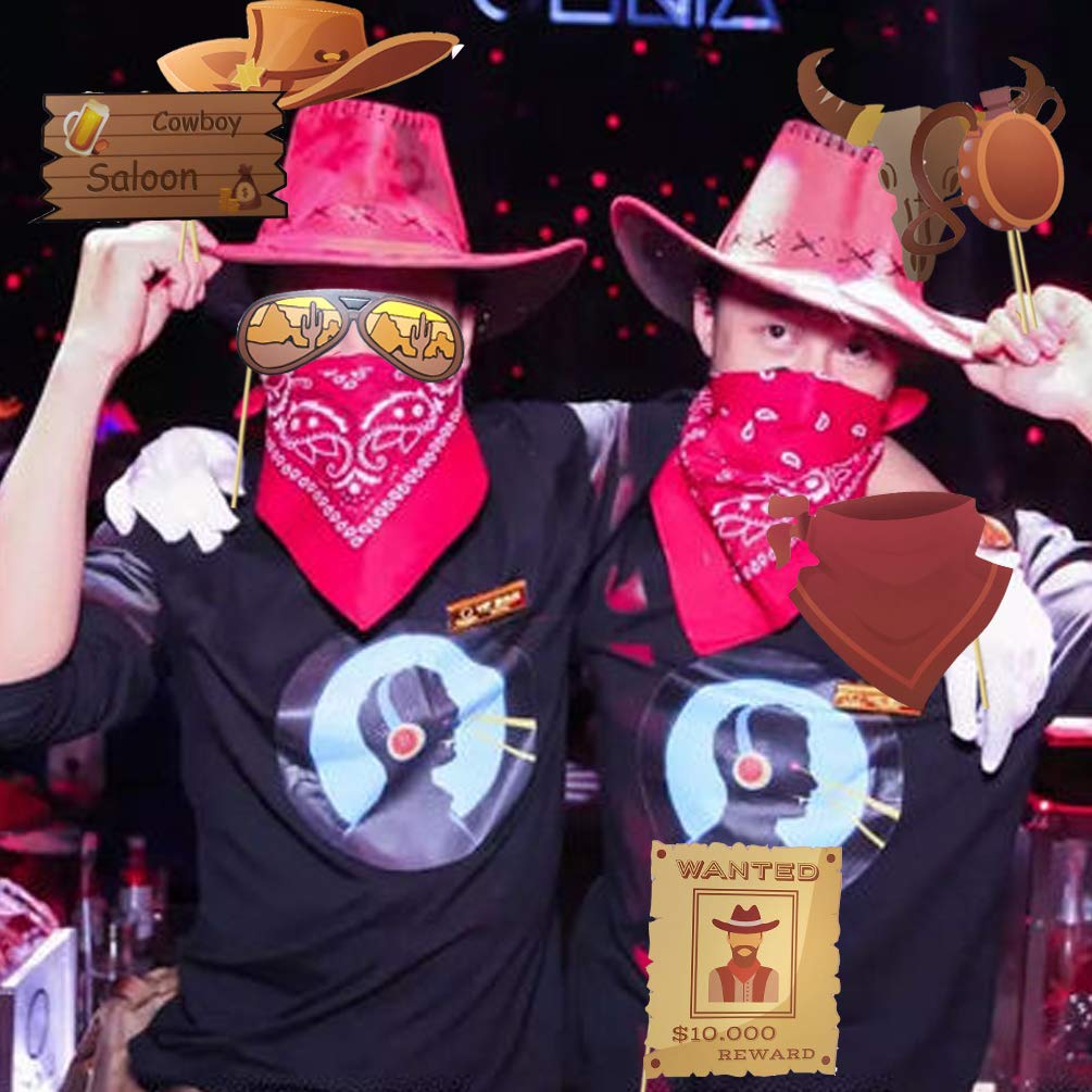 Western Cowboy Photo Booth Props Bandana Wild West Party Accessory Funny Barnyard Theme Selfie Props Western Cowboy Party Decoration for Kids Boys Girls Baby Shower,1st Birthday Party Supplies 30pcs
