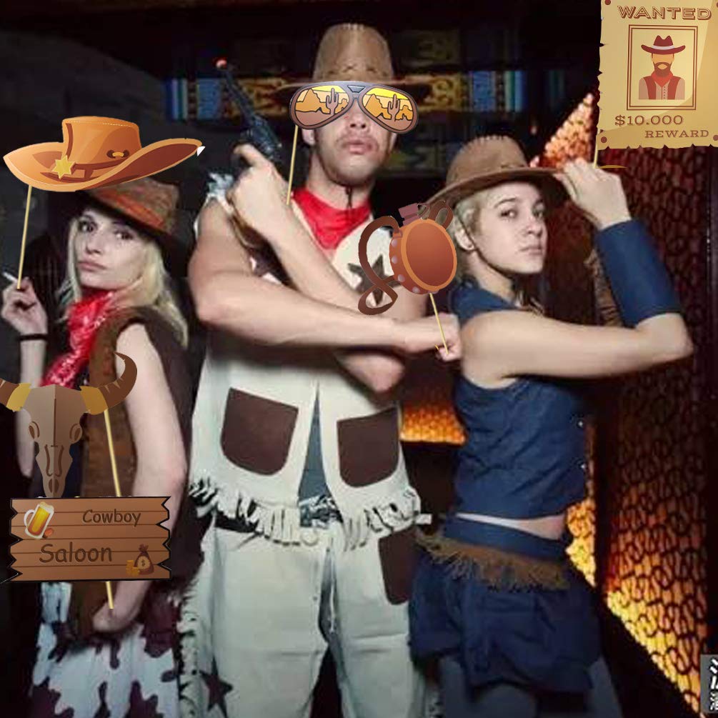 - ♞Easy to use: the west cowboy style set can be used as the photo booth props to take funny pictures and leave the unforgettable memory ,you can also used it as the table centerpieces to decorated western cowboy party