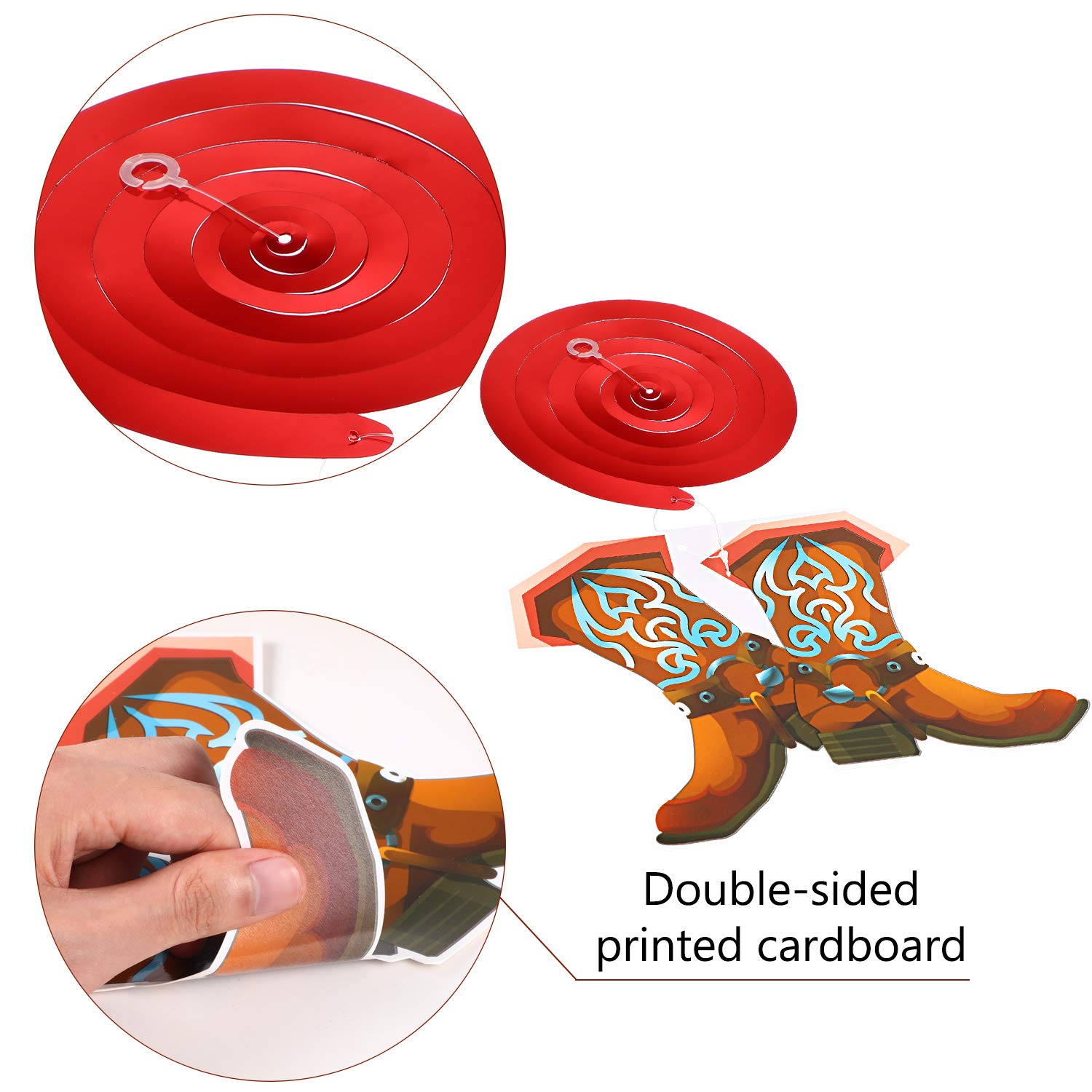 - Design: these party decorations hanging swirls with design of western scarf, cowboy hat, star, yak skull, boots and cactus, etc., various cute shapes will make your party more special and impress your guests young and old alike