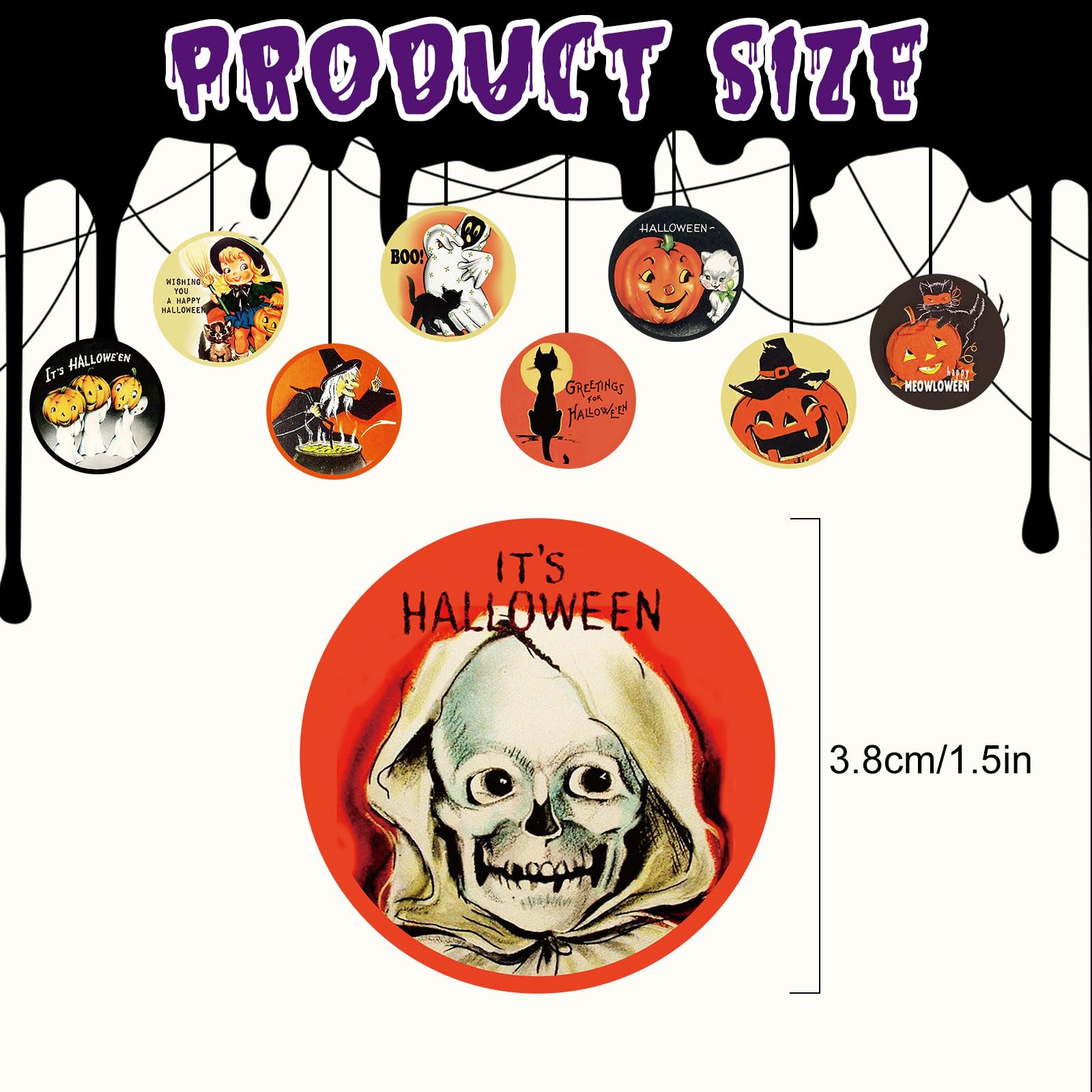 Whaline 1000Pcs Halloween Stickers Roll Retro Halloween Characters Decal Sticker Grimace Pumpkin Witch Ghost Pattern Sealing Labels Round Adhesive Sticker for Halloween Party Favors Decor, 14 Design