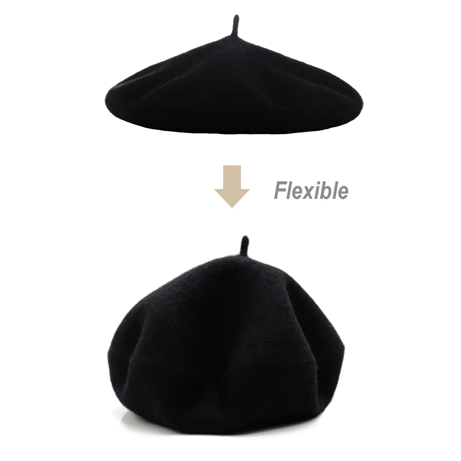 Wheebo Berets for Kids Wool French Beret Hats Artist Painter Hats for Little Girls Boys Solid Color Style(Black)