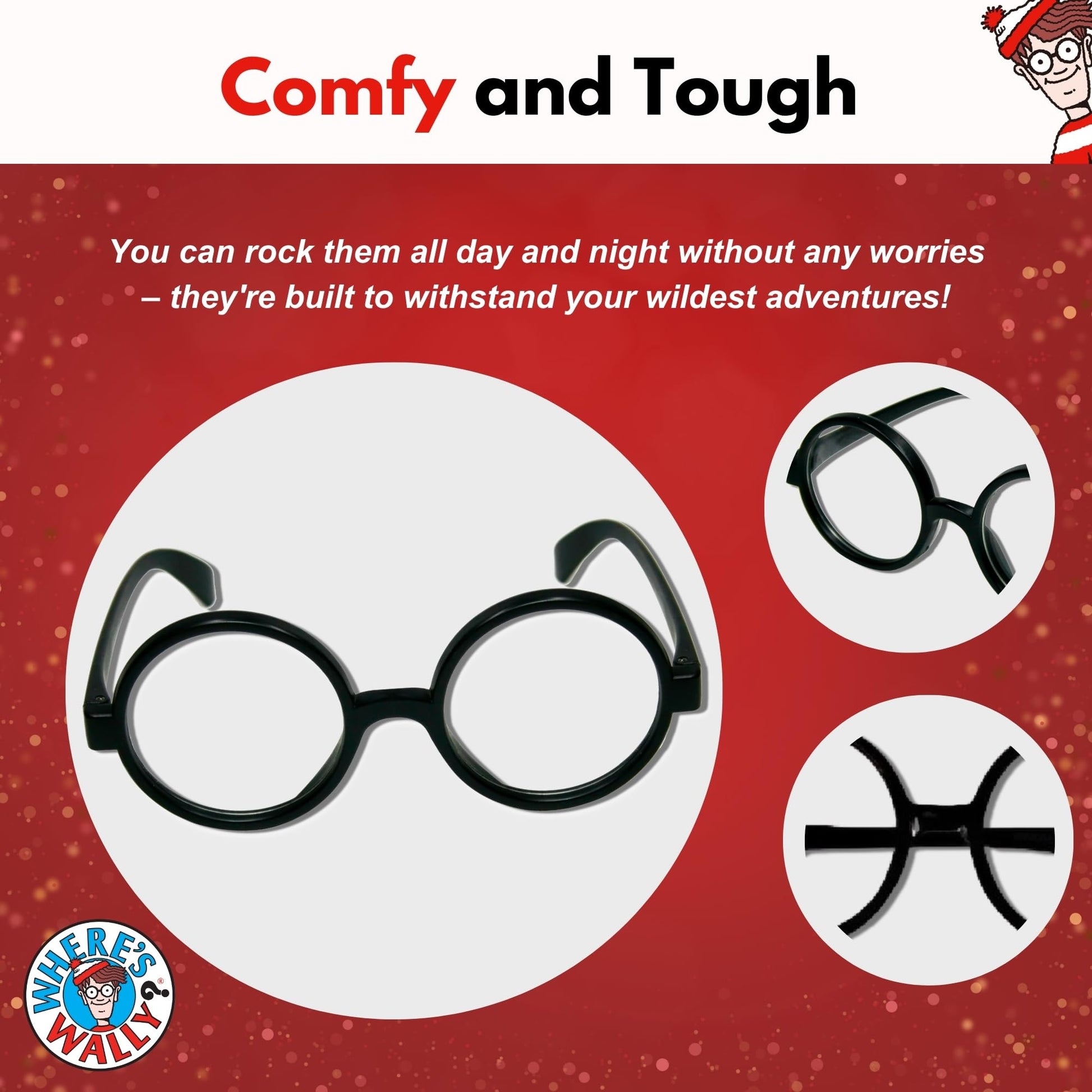 - COMFY AND TOUGH: We've put our heart and soul into crafting these cosplay glasses round for where's waldo with quality materials to ensure maximum comfort and durability. You can rock them all day and night without any worries – they're built to withstand your wildest adventures!