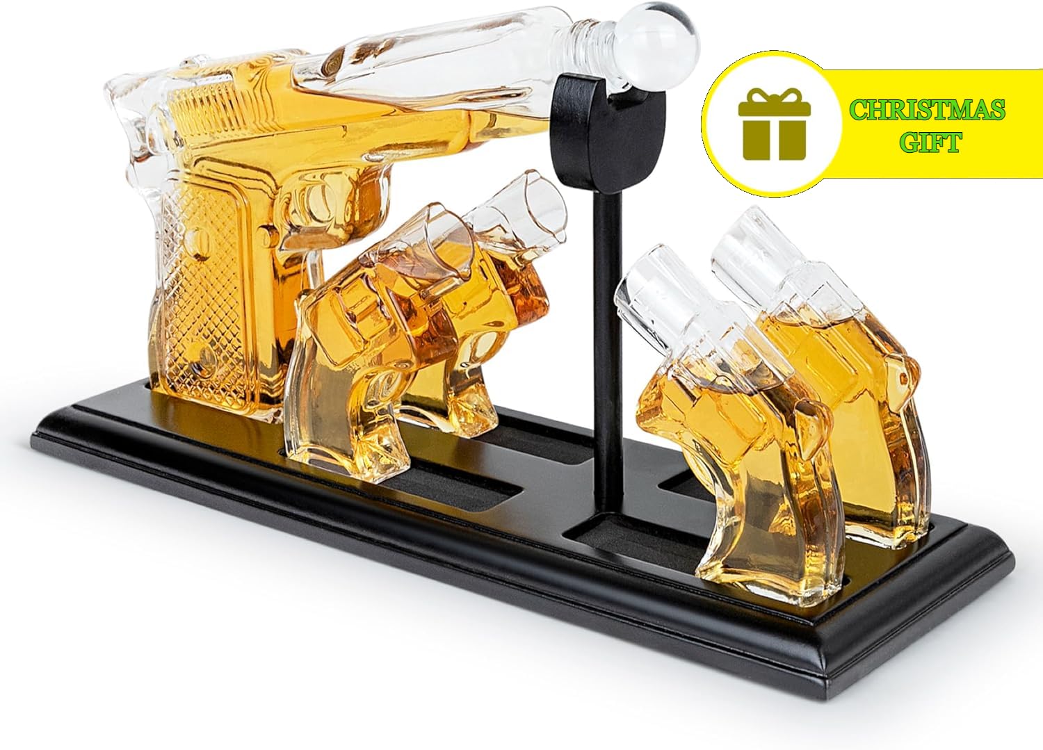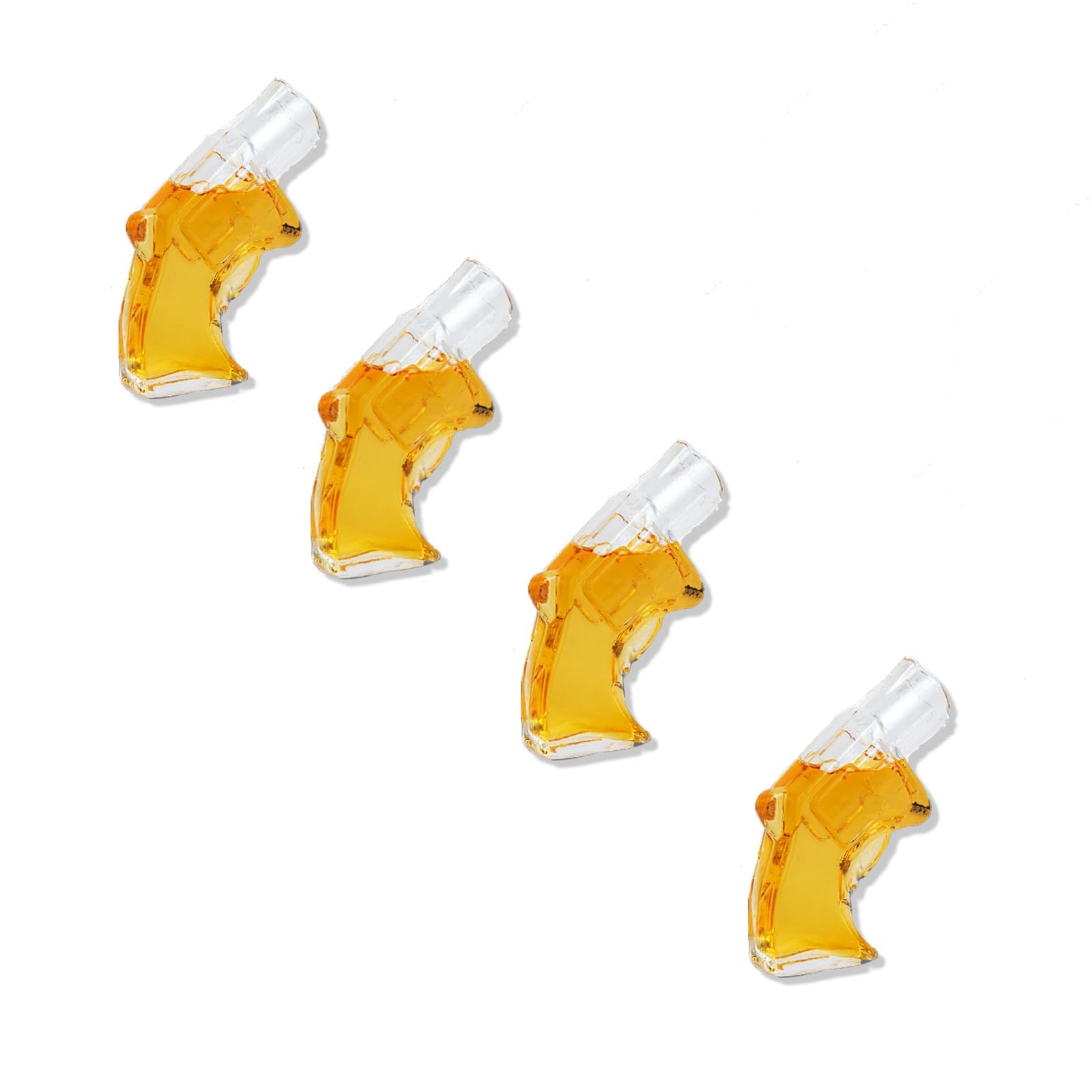 - š GUN SHAPED SHOT GLASSES - 4 - Includes four 2 oz glasses. Our glasses feature a unique design with prop penetrating the glass. - Our whisky decanter never fails to deliver the best impressions. Make a sophisticated gift on Fatherās Day, Birthdays, Graduation Day, Christmas, Anniversaries, Weddings or any occasion worthy of a standout gift.
