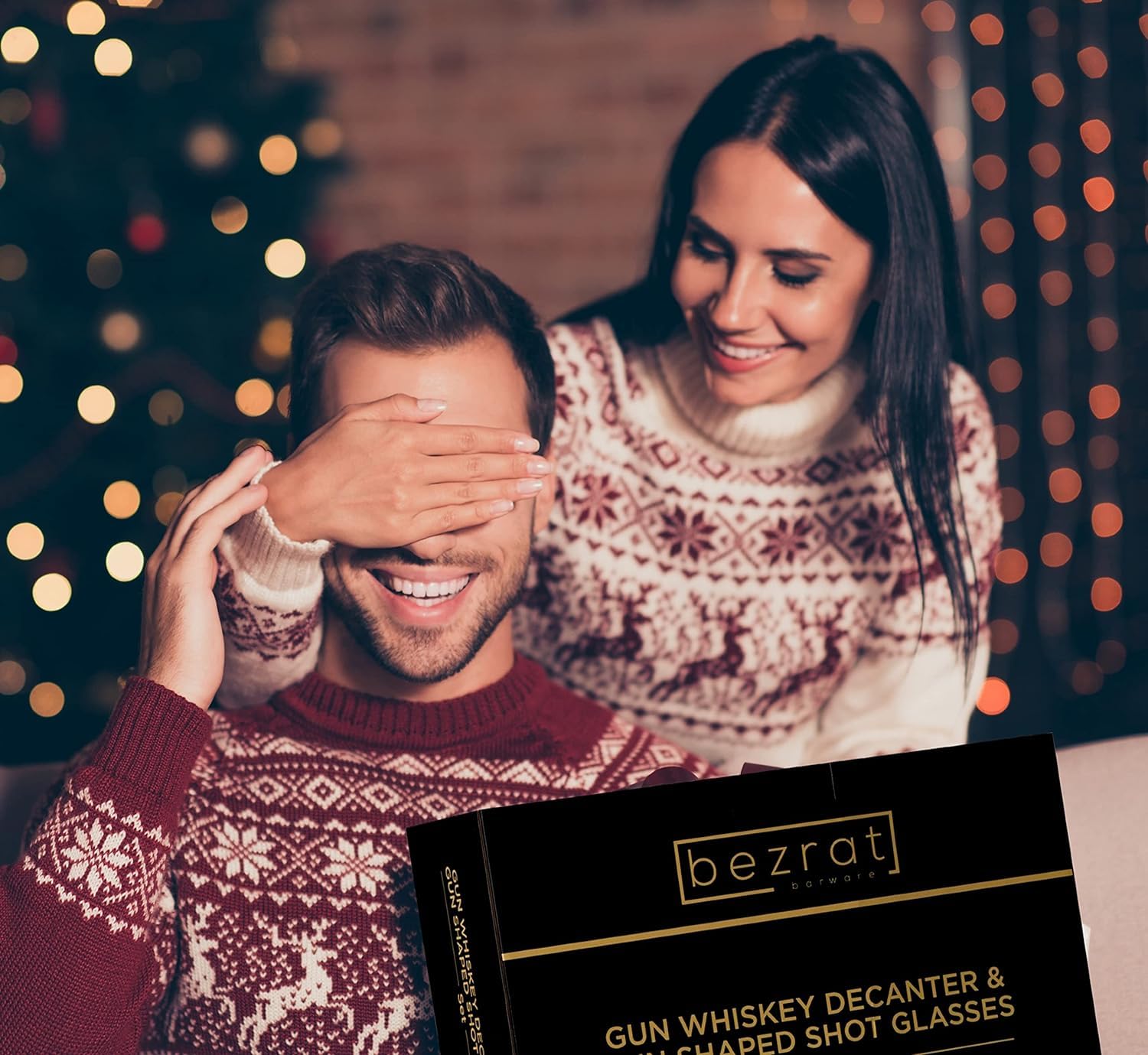 - š WHISKEY GUN DECANTER - 200ml - The Bezrat Lead free Whiskey Decanter enters with an exclusive design - The decanter is made with high-end borosilicate glass for both durability & because borosilicate glass is an ideal host for refined liquors. It does not change the color, taste, or alter the nuances of your favorite alcoholic beverages.