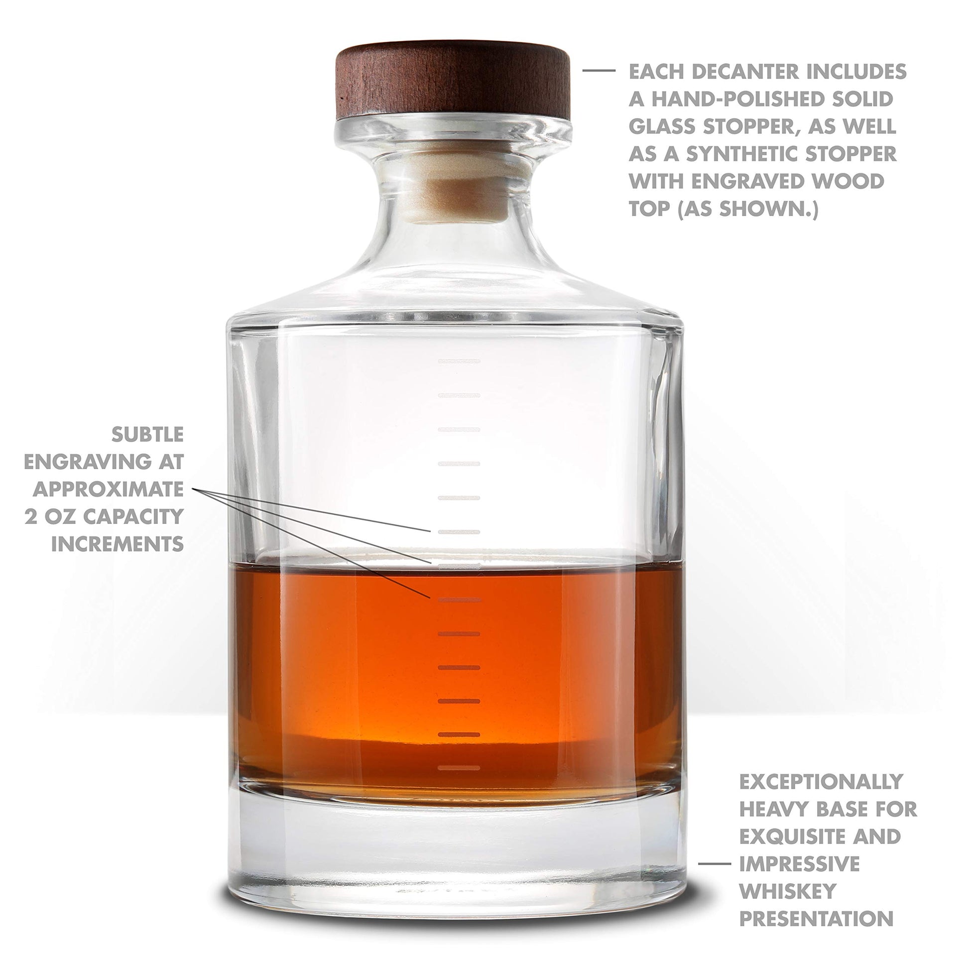 - TWO STOPPERS TO CHOOSE FROM – Cairn Craft’s Infinity Decanter is designed to present your whiskey in the most elegant way with a remarkably heavy base. The decanter now includes two stoppers: a hand polished solid glass stopper individually polished for a secure, air-resistant fit within its paired decanter, as well as a tight-fitting synthetic cork with an engraved wood top.