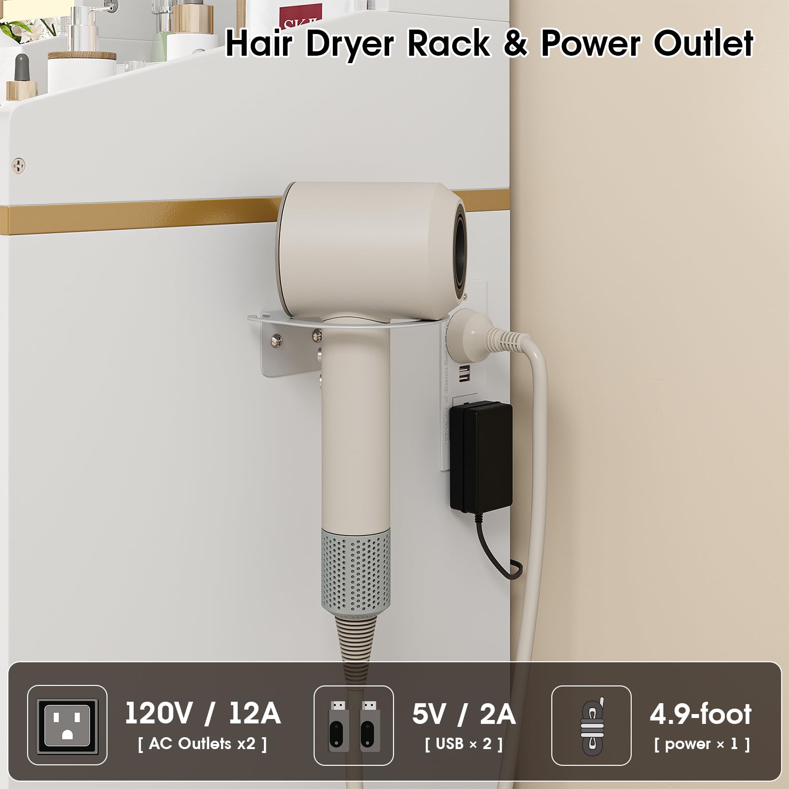 - Adjustable LED Mirror with Built-in Outlet: The integrated LED mirror offers customizable lighting for flawless makeup application, while the built-in outlet ensures convenient access to power for styling tools.