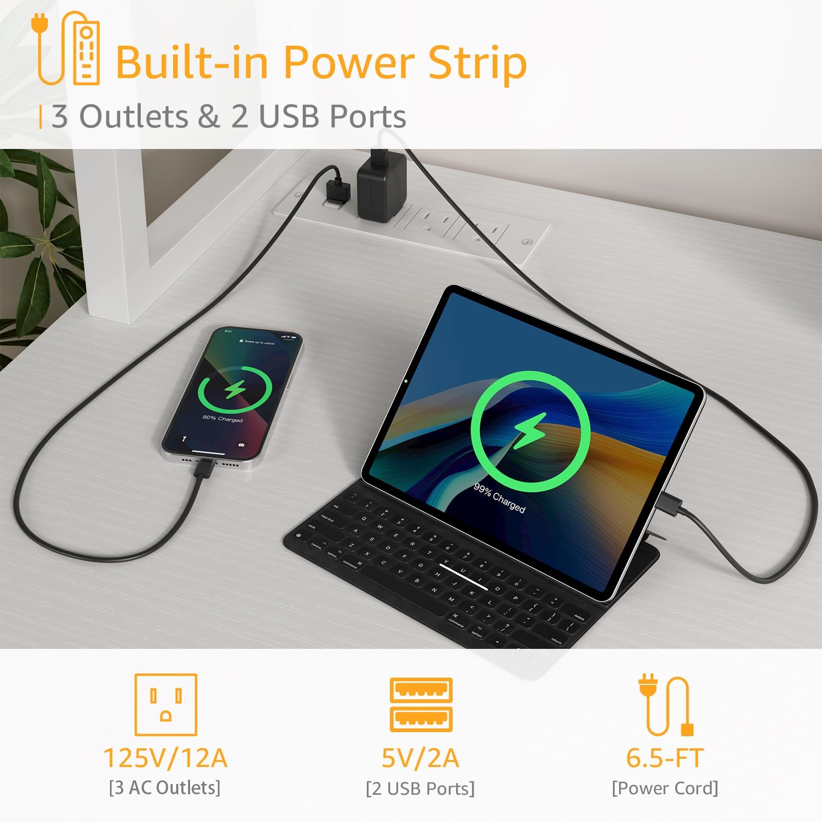- Modern Simple Style Design: Computer desk with hutch & 3 ππππ§ππ πΏπ§ππ¬ππ§π¨, provides plenty of storage. Built in power outlets with 3 AC power outlets & 2 USB ports. This desk is made of thick P2 particle wood board with scratch-resistant, anti-collision and waterproof, protect home office desk surface from daily wear and tear