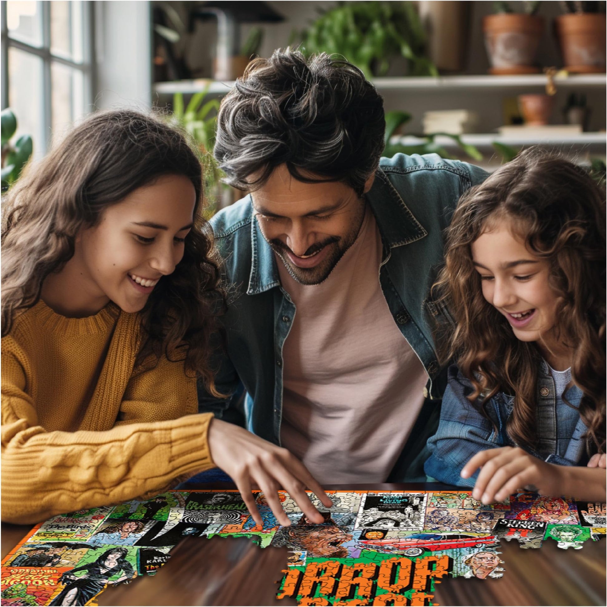 - Spooky: Relive the chills and thrills of classic horror with this “Horror Stories” puzzle! Each piece brings you face to face with iconic characters & scenes from your favorite spine-tingling movies.