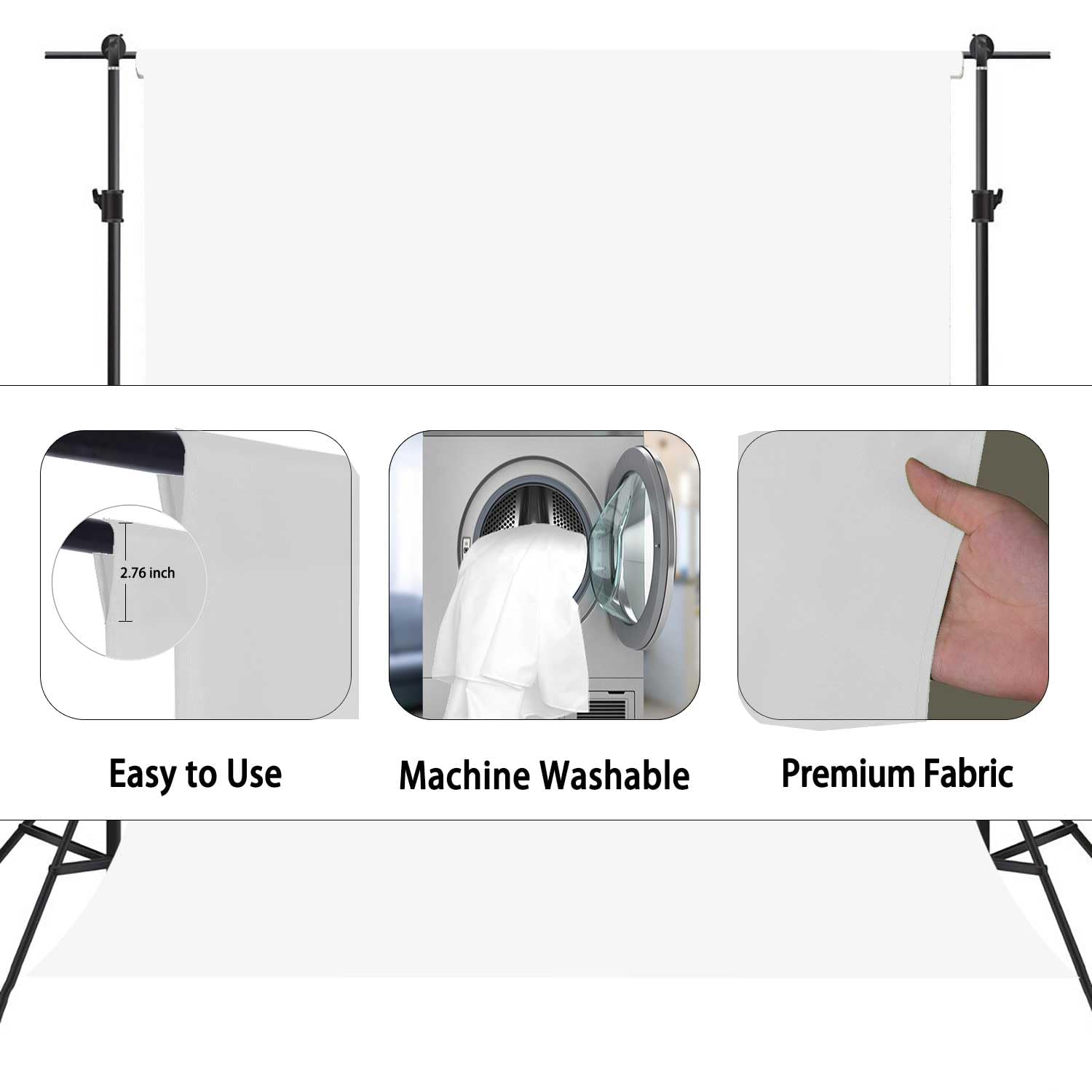 - Easy to Use: The top of the white photography backdrop sews a 2.76-inch rod bag, the cross bar can directly pass through the backdrop rod pocket for easy installation, will not affect the overall beauty of the background.