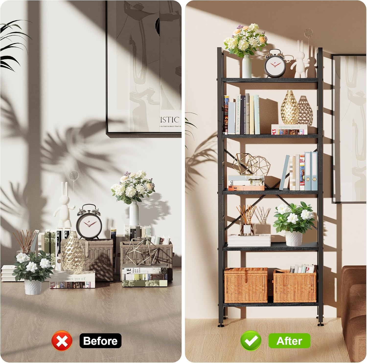 - 【Modern Industrial Style for Any Room】 Sleek black finish + clean lines blend seamlessly with industrial, modern, or minimalist decor. More than a bookshelf—it’s a statement piece! Perfect for bedroom, home office, kitchen, living room, or garage. Elevates organization while enhancing room aesthetics.