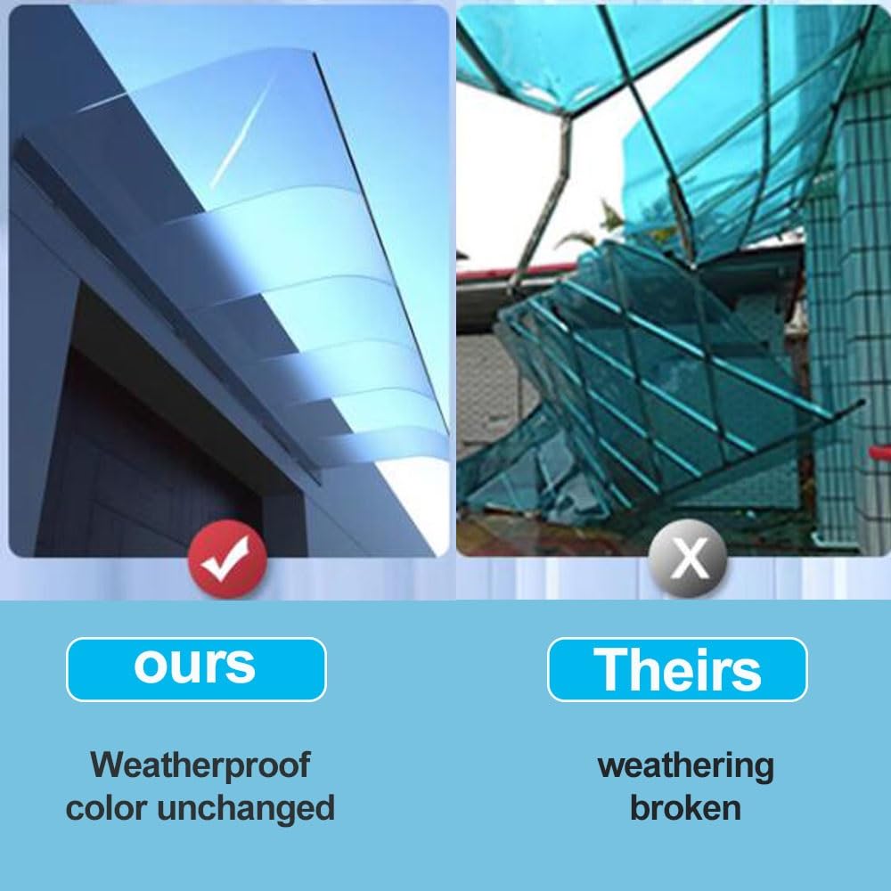 - (durable and safe) Door and window awnings are made of transparent polycarbonate sheet, safe heat resistance, can withstand extreme temperature, strong impact resistance, shatterproof, easy to clean, widely used in construction industry