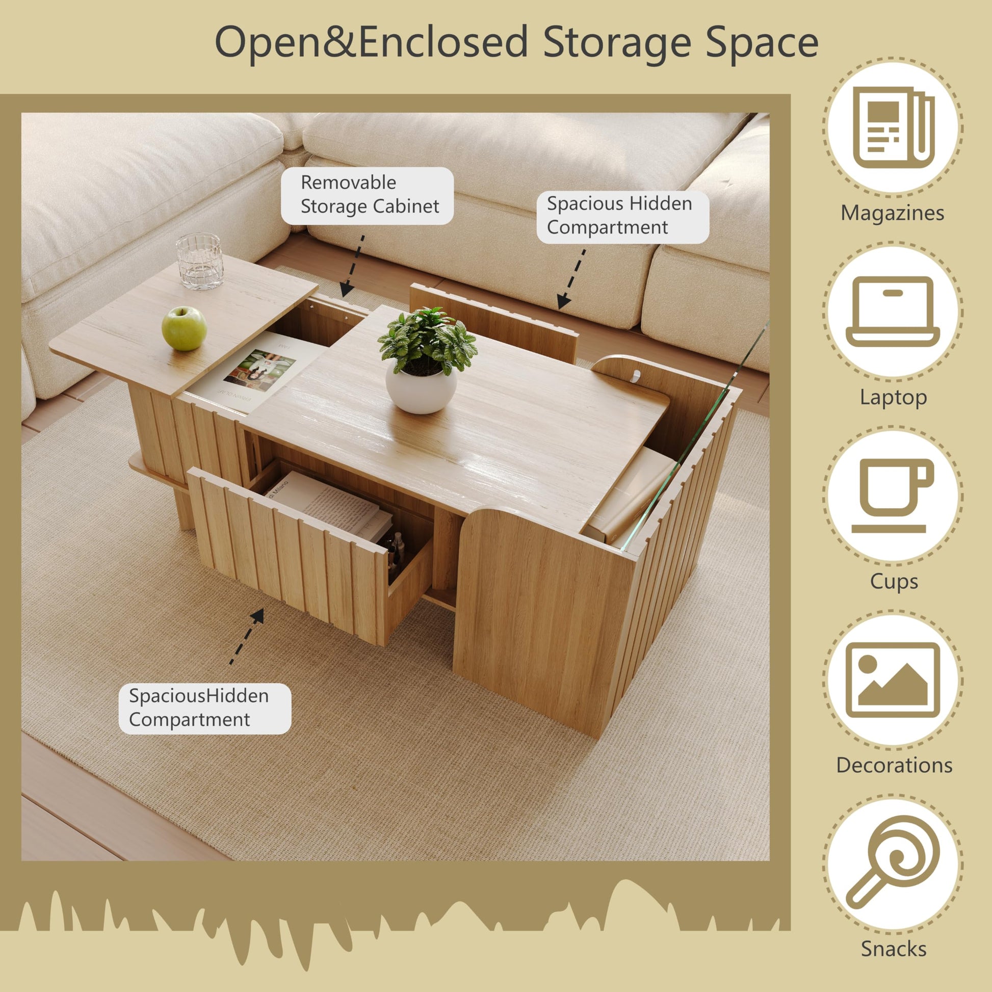 - ✅【Storage Galore】Say goodbye to clutter with our coffee table's amazing storage. Slide open the tabletop for a hidden compartment, plus two large drawers and a shelf. The side table adds extra storage, keeping your living room tidy and stylish.