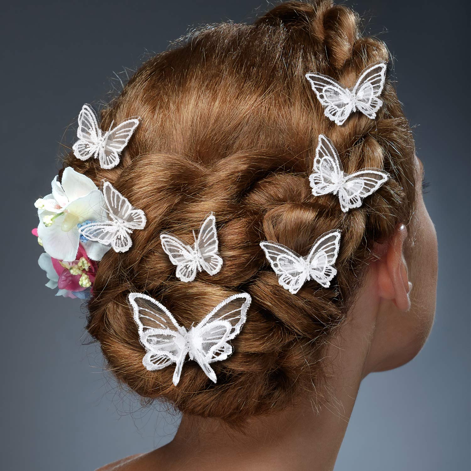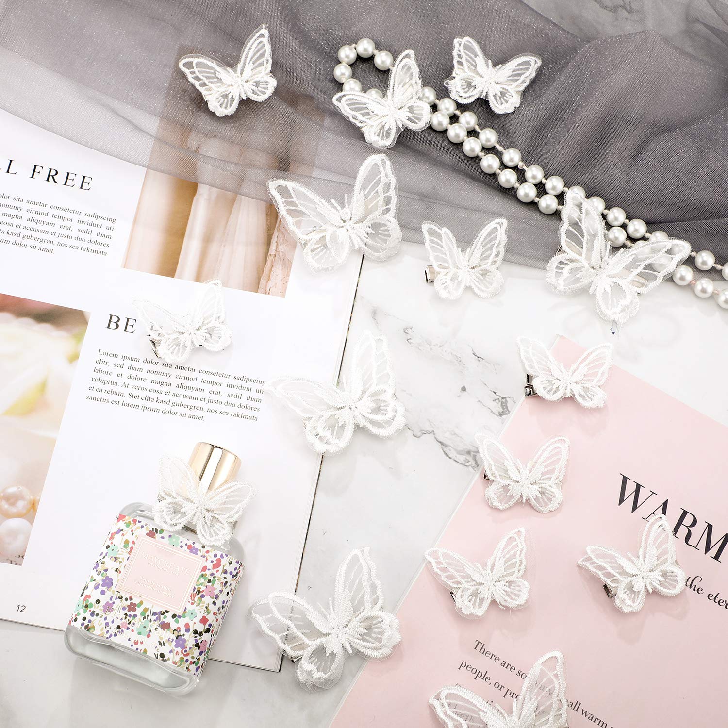 WILLBOND 18 Pieces Butterfly Hair Clip Halloween Lace Bows Embroidery Butterfly Hair Pins Accessories for Halloween Cosplaying Women, 2 Sizes(White)
