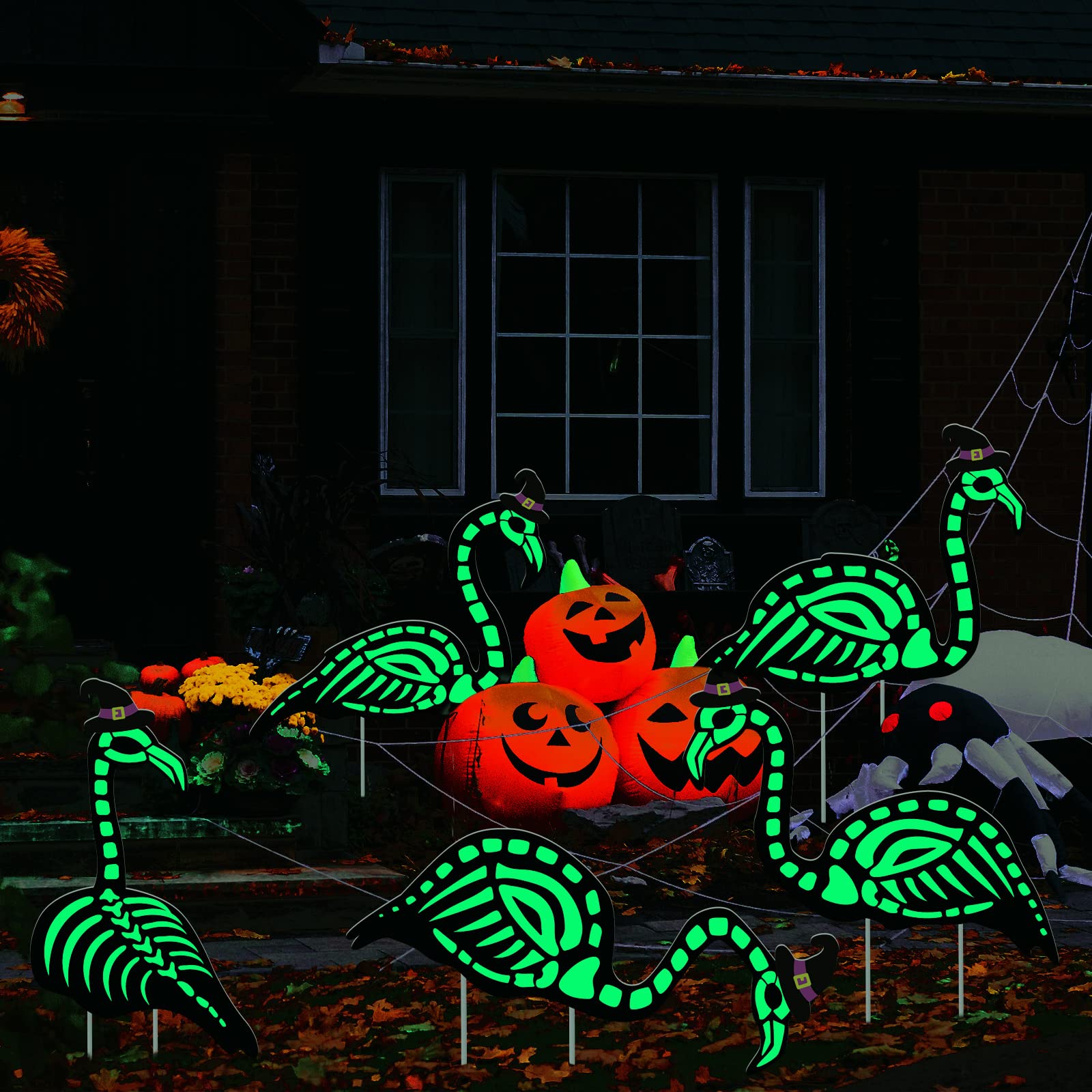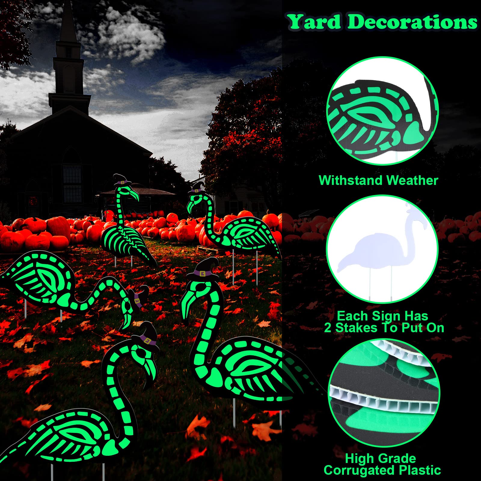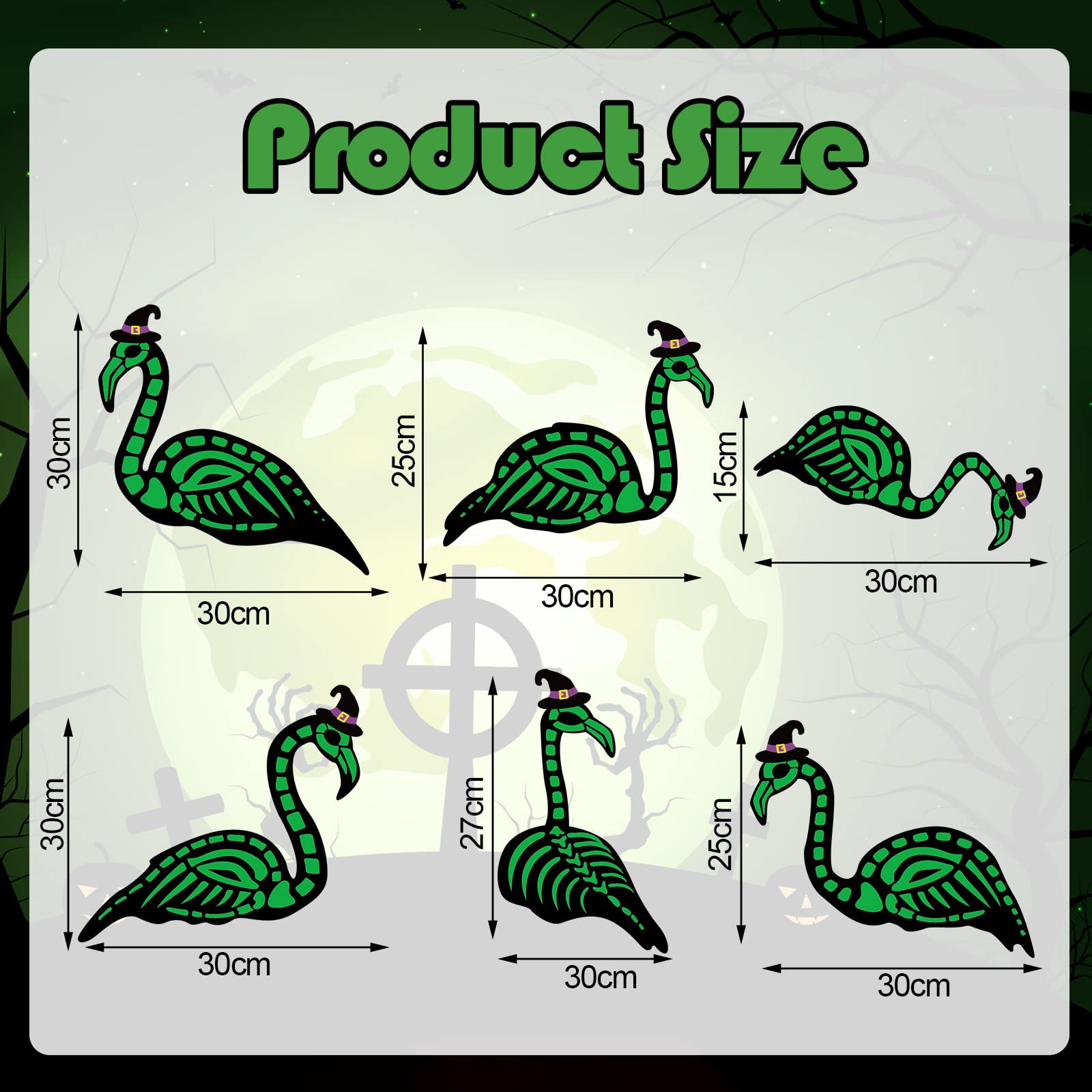 WILLBOND 6 Pcs Halloween Glow in the Dark Skeleton Flamingo Scary Creepy Halloween Outdoor Decor Zombie Flamingo Yard Decor Flamingo Skeleton Decor Scary Halloween Decor for Halloween Party