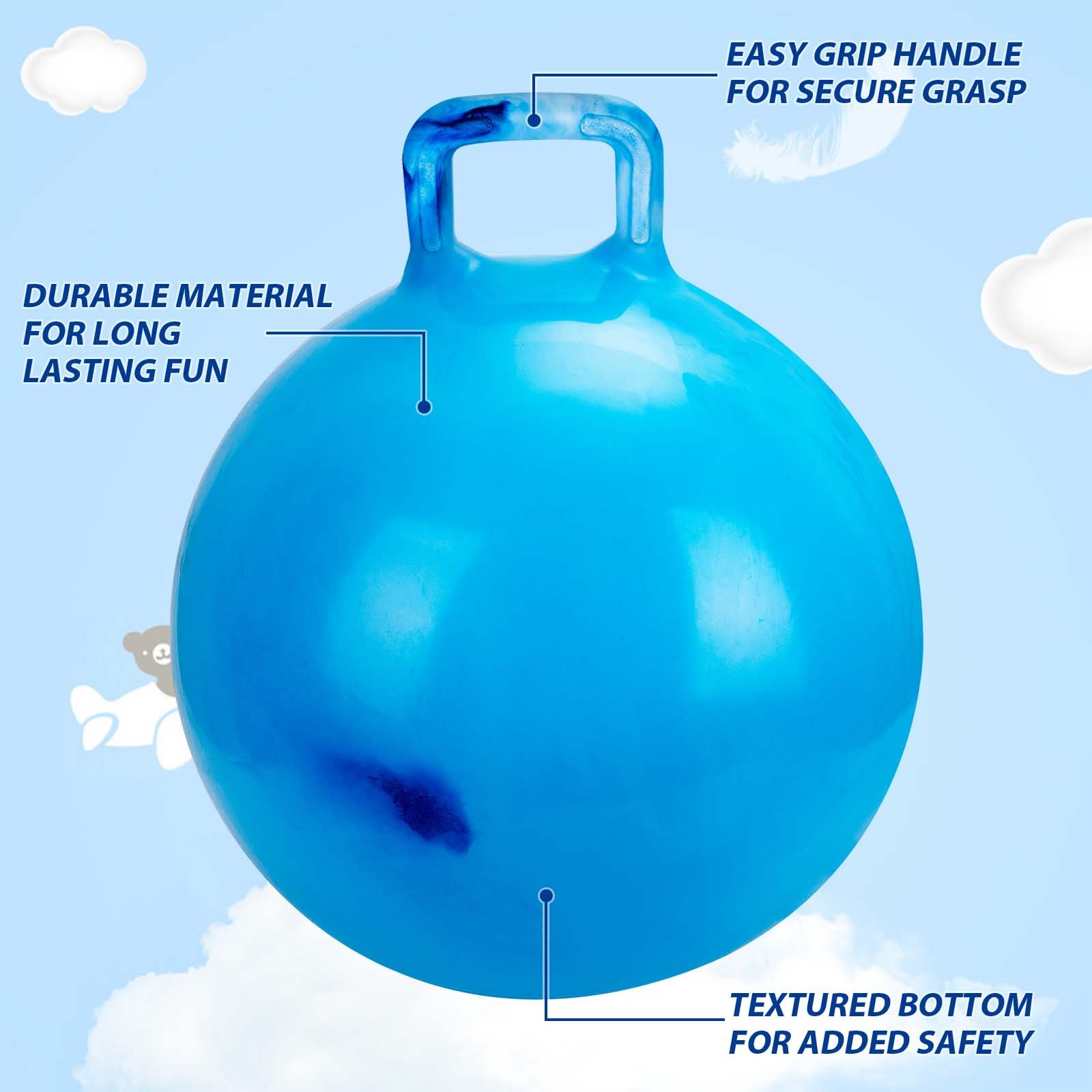 Willingfun Hopper Ball 2 Pack with Air Pump, 18 Inch Bounce Balls with Handles for Kids, Best Gift for Ages 3 4 5 6 7 8 Boys and Girls, Toys for Ages 3-10, Ride on Toys for Kids 4-8, Hopper Toy
