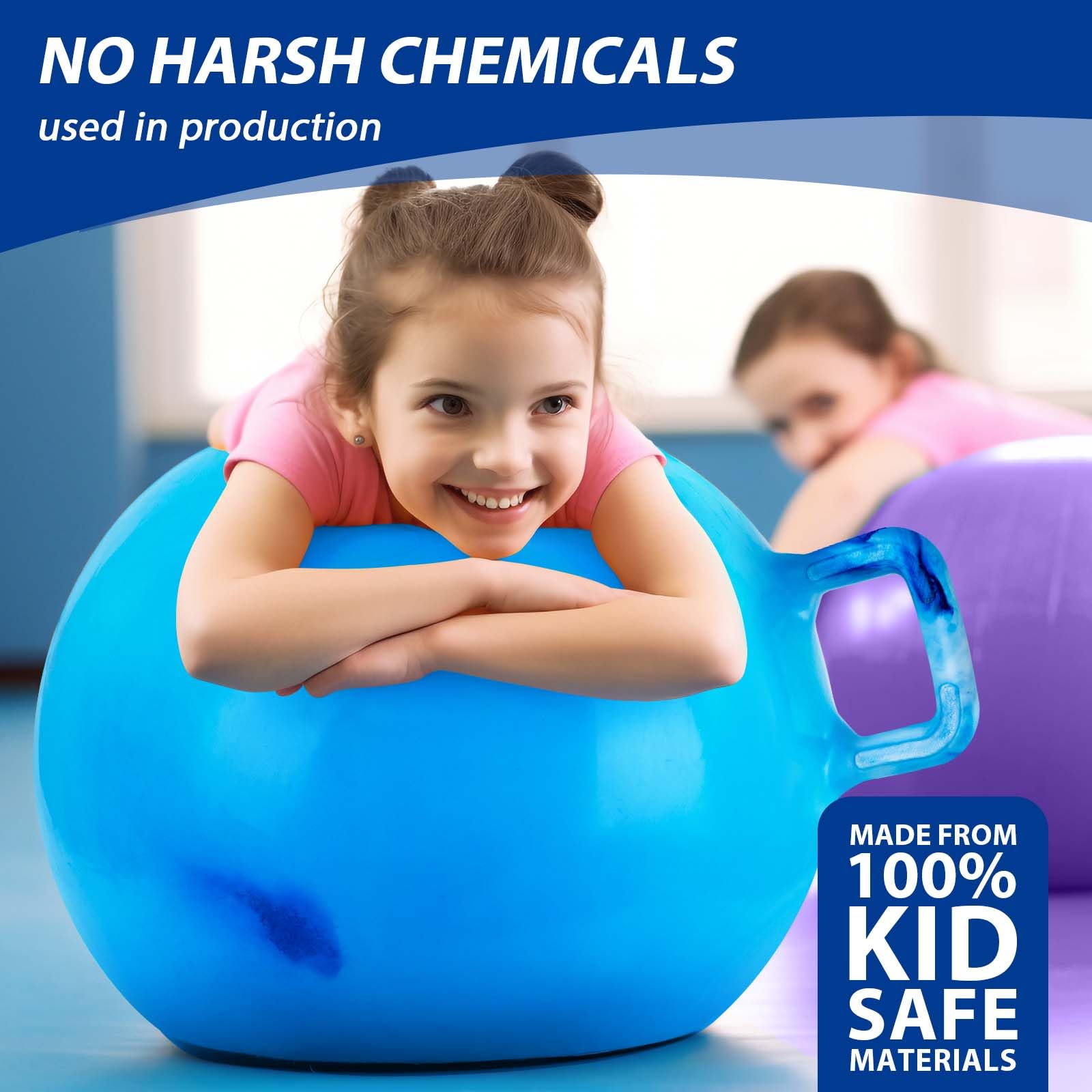 - Safe and Easy to Use - The ball for kids is made with durable and eco-friendly material. The texture grips handle and non-slip bottom of the boucy balls provide a safe assurance while bouncing. The hopper ball is equipped with air pump, so it is easy to use, just pump and bounce!