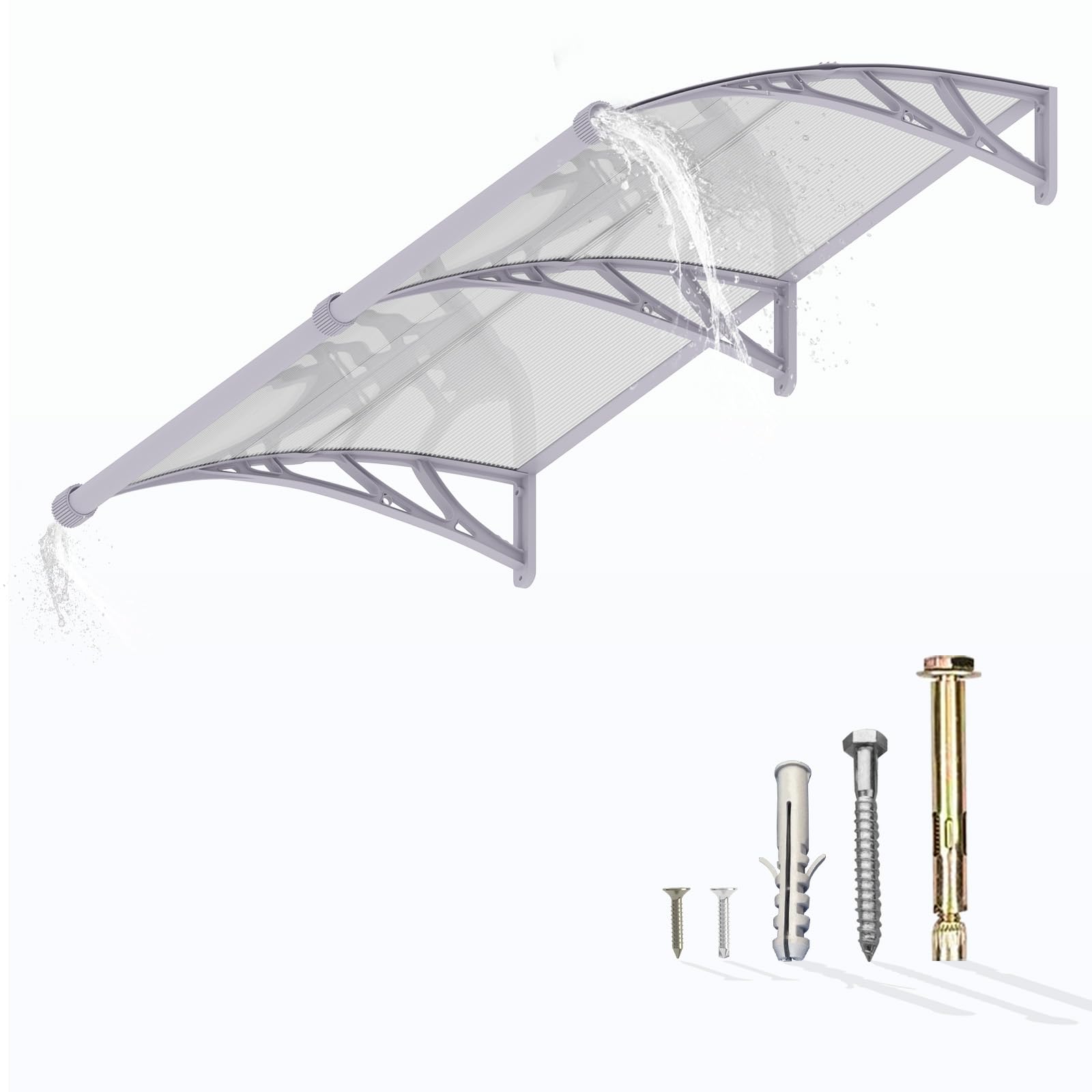 - PREMIUM PC SHEET AND EASY INSTALLATION: This door awning with a sleek appearance and lightweight material. The PC sunshade panel is resistant to extreme temperatures, corrosion, fade, and Impact. Whether it's freezing winters or scorching summers, it can handle it all. the door awning is suitable for different types of walls, such as cement, wood, brick, etc. Best of all, with detailed and clear instructional images, our awning canopy saves you time and effort during the installation process.