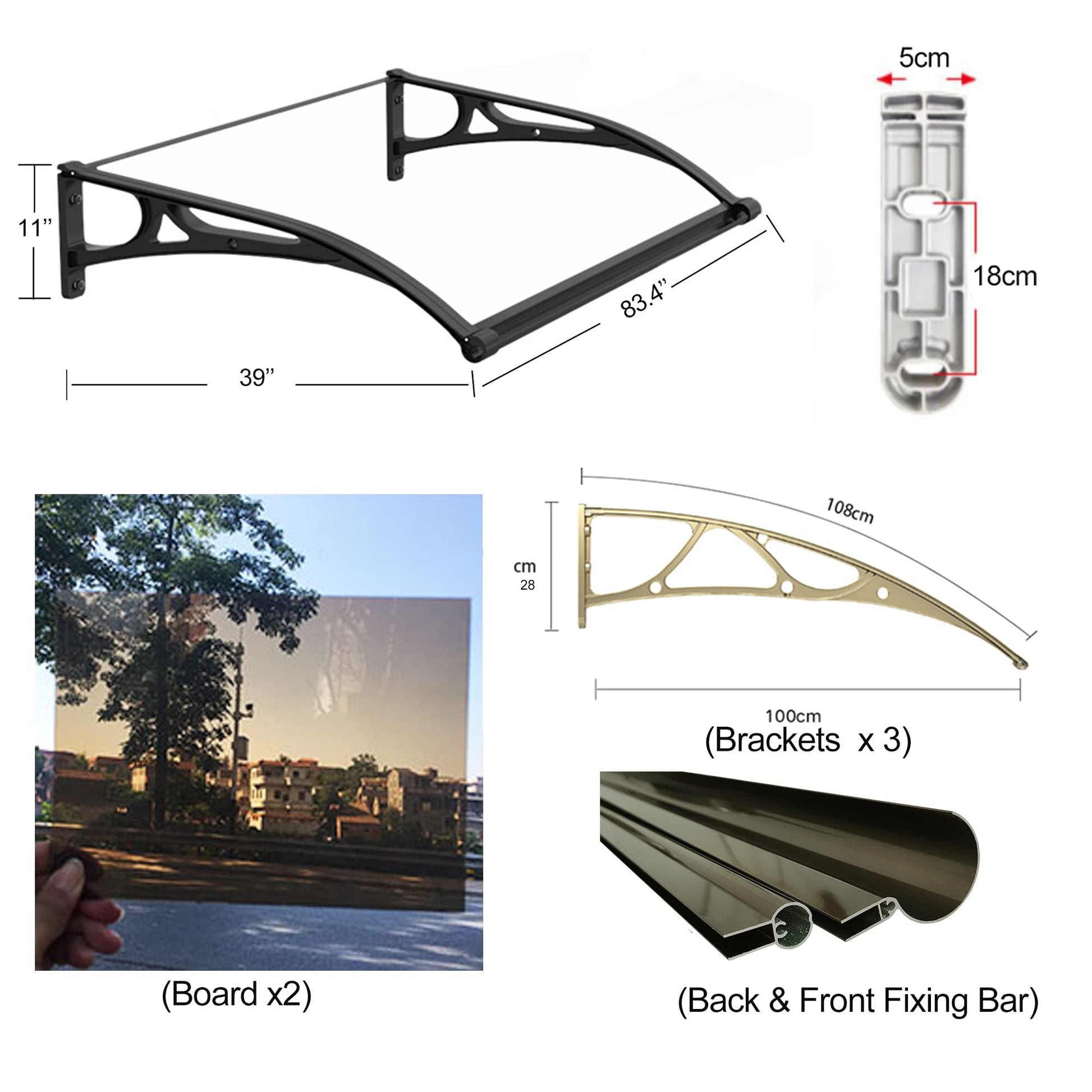 - 【ASSEMBLY SUGGESTIONS AND PRECAUTIONS】: The installation procedure is simple and requires two people to install it simultaneously to prevent installation errors. The accessories include expansion screws, sun visor and aluminum alloy bracket with a separate drain qutter. Please check the screw connection between the bracket and the wall regularly to keep the screws tight and firm at the joint