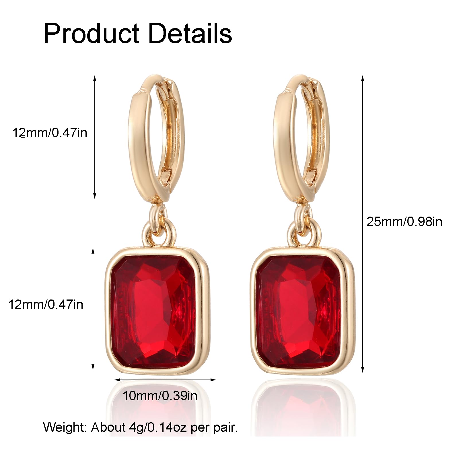 - Size: Birthstone size: 12*10 mm. The huggie hoop is 12 mm.