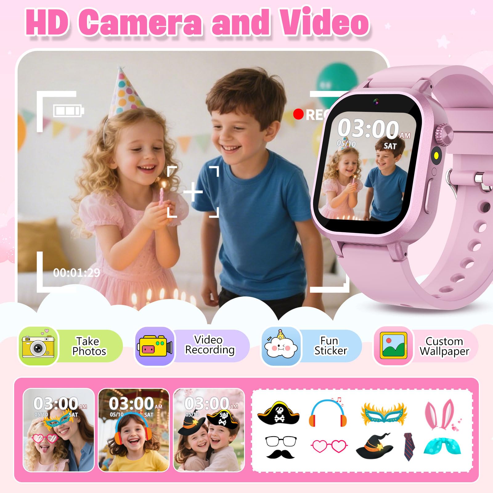 - HD Camera & Video: Kids watch has built-in HD camera makes it more convenient for kids to record every moment in their lives. Children can use magic cameras take some hilarious photos with family or friends, set your favorite photo as wallpaper. Kids watch is capable of store 15000+ HD photos. The first step in training a child to be a photographer.