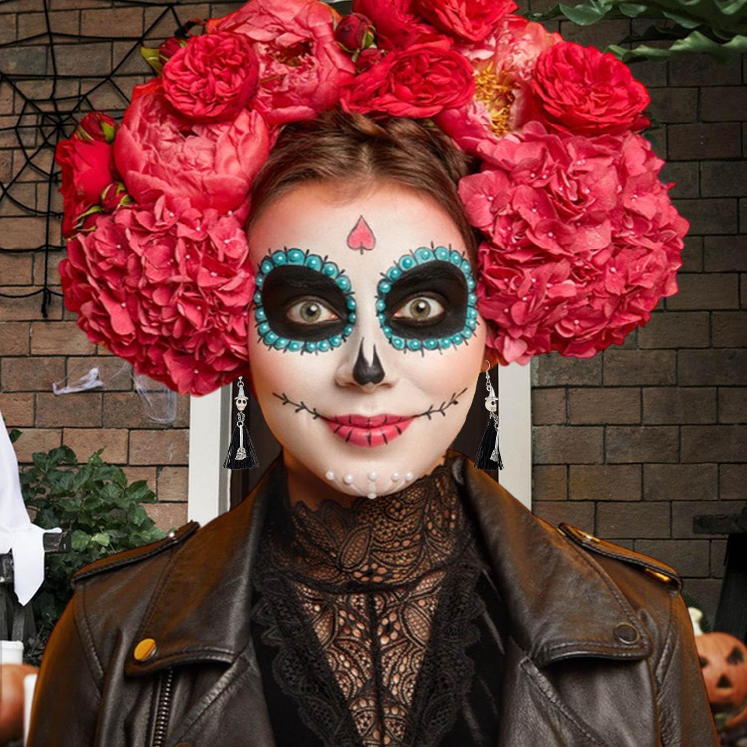Witch Halloween Earrings Skull Skeleton Tassel Earrings for Women Girls, Witch Accessories Gothic Jewelry