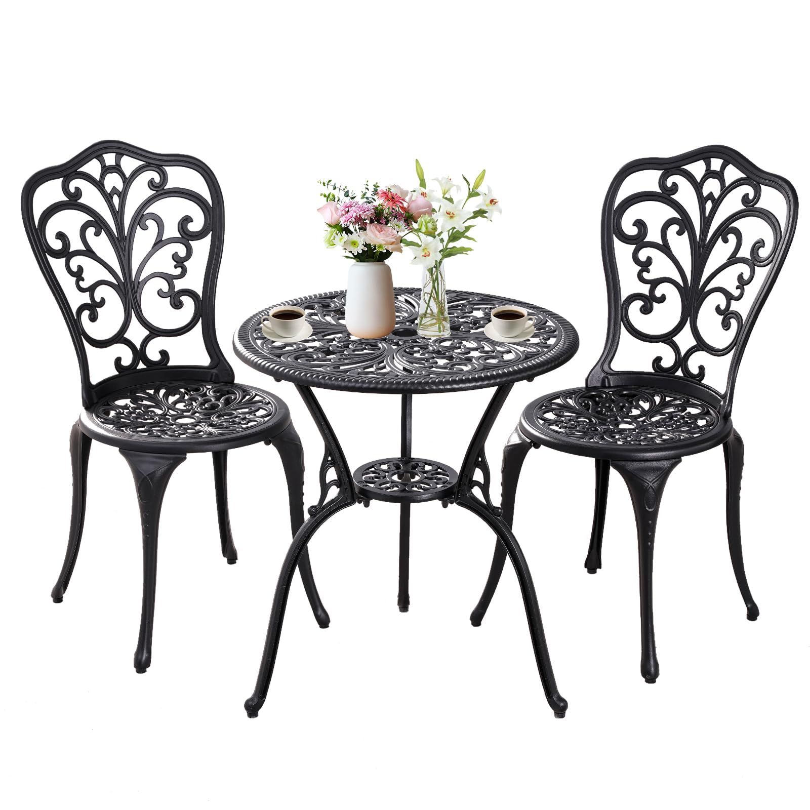 Withniture Patio Bistro Set 3 Piece Outdoor,Cast Aluminum Outdoor Bistro Table and Chair Set of 2 with 1.97" Umbrella Hole,All Weather Bistro Table Set for Front Porch Set(Butterfly Black)
