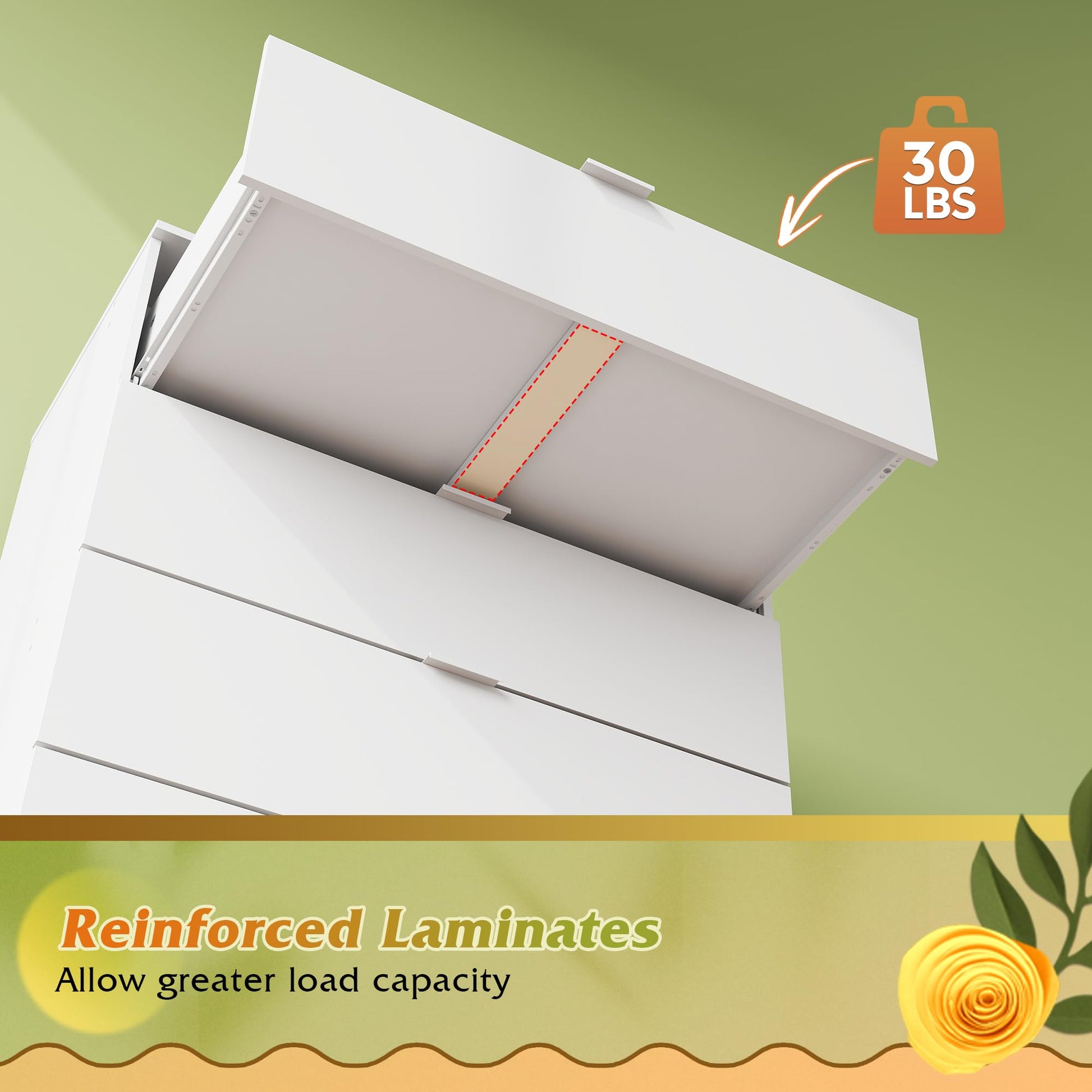 - â¨ăSafe and SturdyăThe bedroom dresser is crafted from durable engineered wood, ensuring long-term use and scratch resistance. Each wood drawer can hold up to 30lbs, and the wood tabletop can hold up to 88lbs. Equipped with an anti-tipping device, effectively preventing shaking or tipping over, keeping family members and pets safe.
