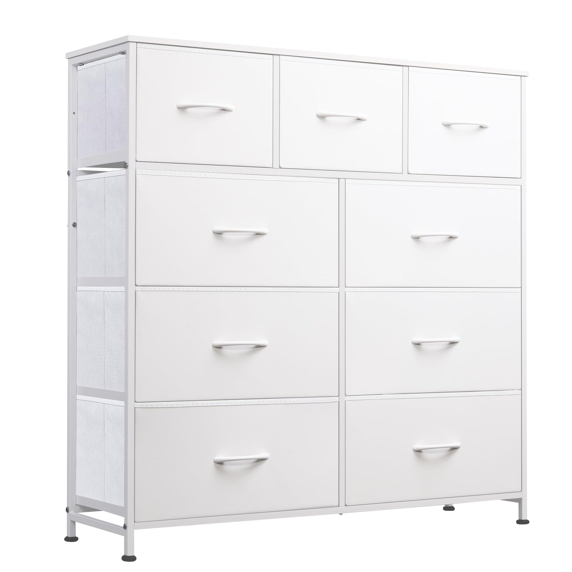 WLIVE 9-Drawer Dresser, Fabric Storage Tower for Bedroom, Hallway, Closet, Tall Chest Organizer Unit for Bedroom with Fabric Bins, Steel Frame, Wood Top, Easy Pull Handle, White