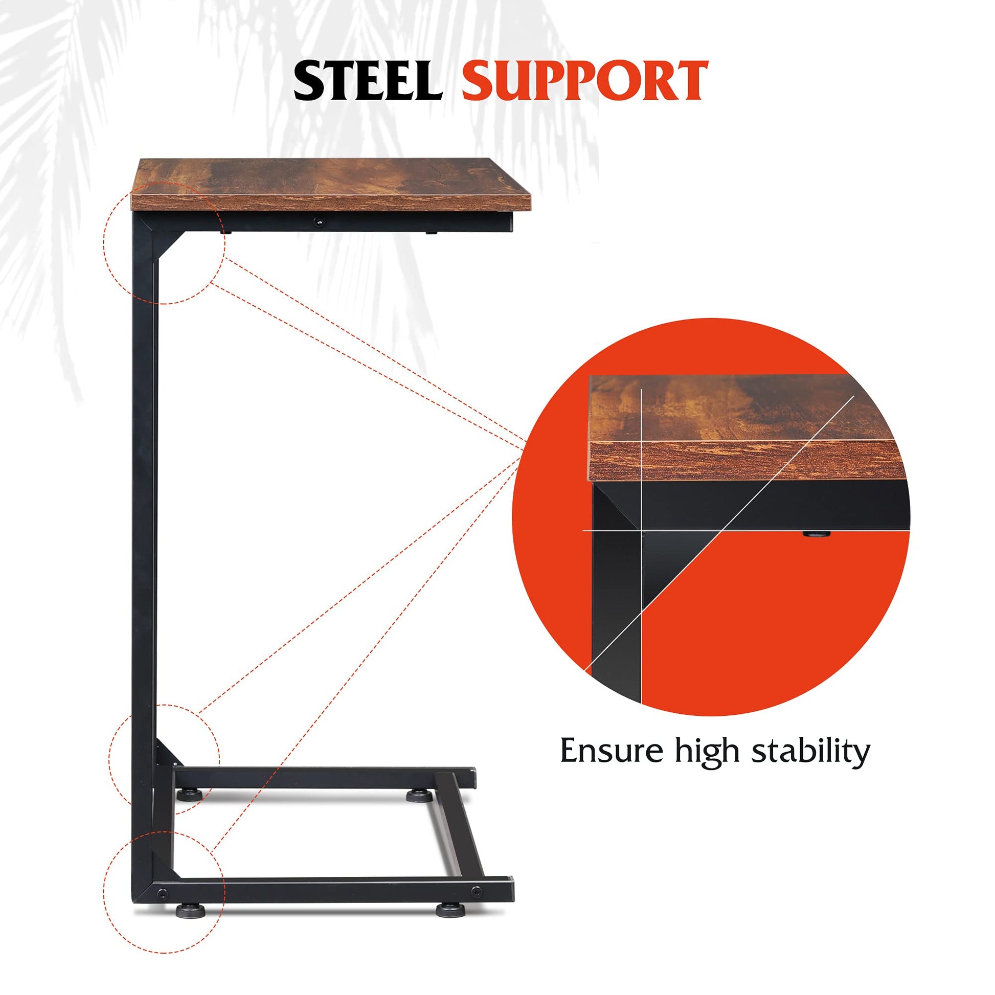 - 【Sturdy & Durable】This end table is designed with steel c shape which makes the frame sturdy enough for you to use without anxiety. We also have tested components' ability many times to improve this item's quality. This small side table's maximum load bearing is 50lbs.