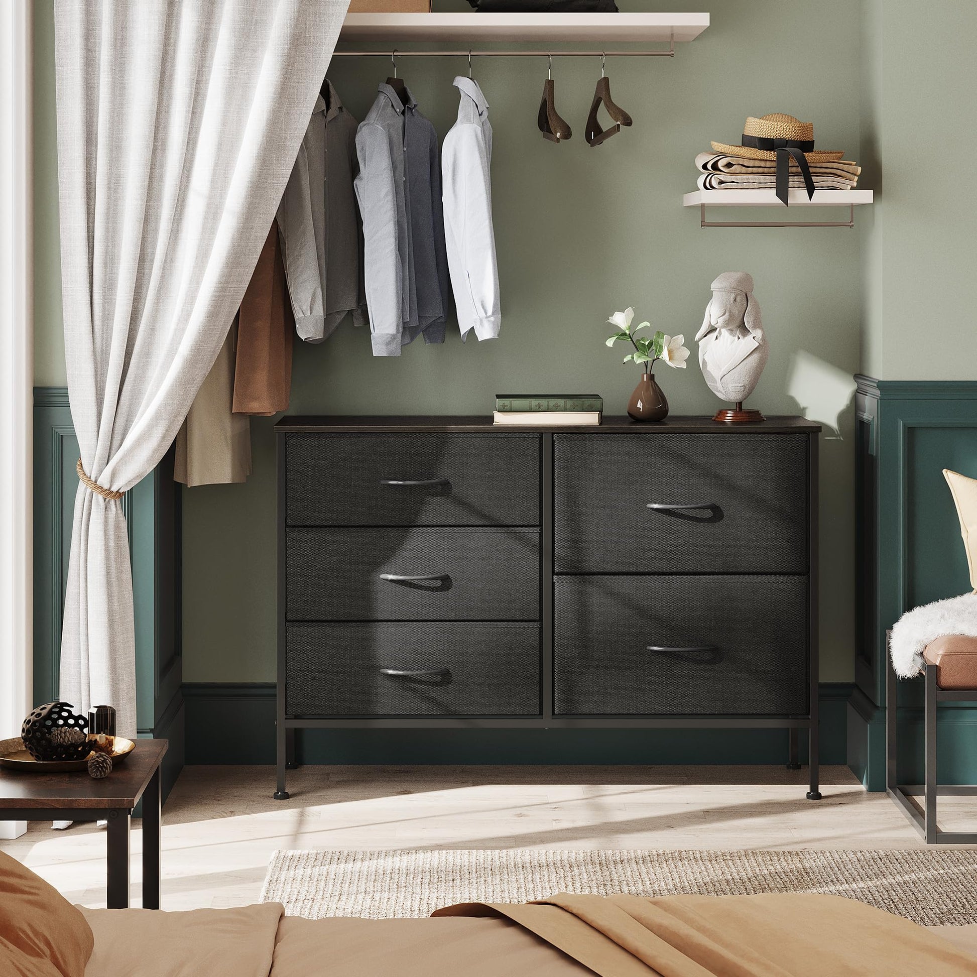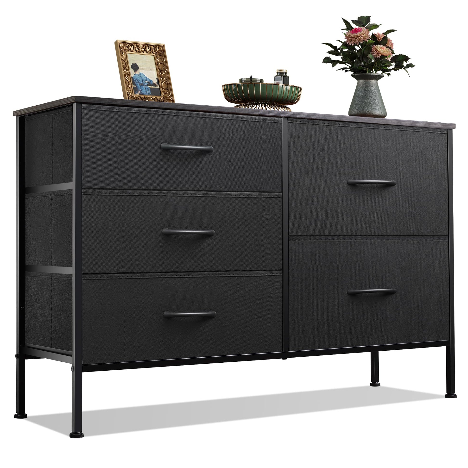 WLIVE Dresser for Bedroom with 5 Drawers, Wide Bedroom Dressers with Drawer Organizers, Chest of Drawers, Fabric Dresser for Living Room, Closet, Hallway, Charcoal Black