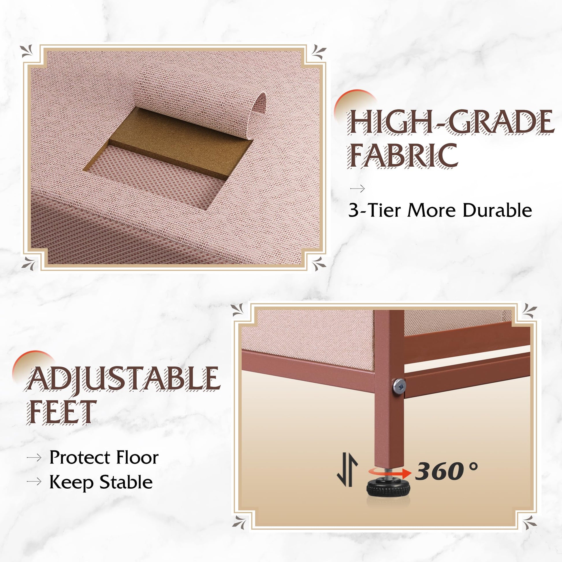 - 5 DRAWER CHEST: Features 5 removable foldable drawers; Easy pull handles help open and close the drawers smoothly; 4 adjustable feet protect your floor from scratches.