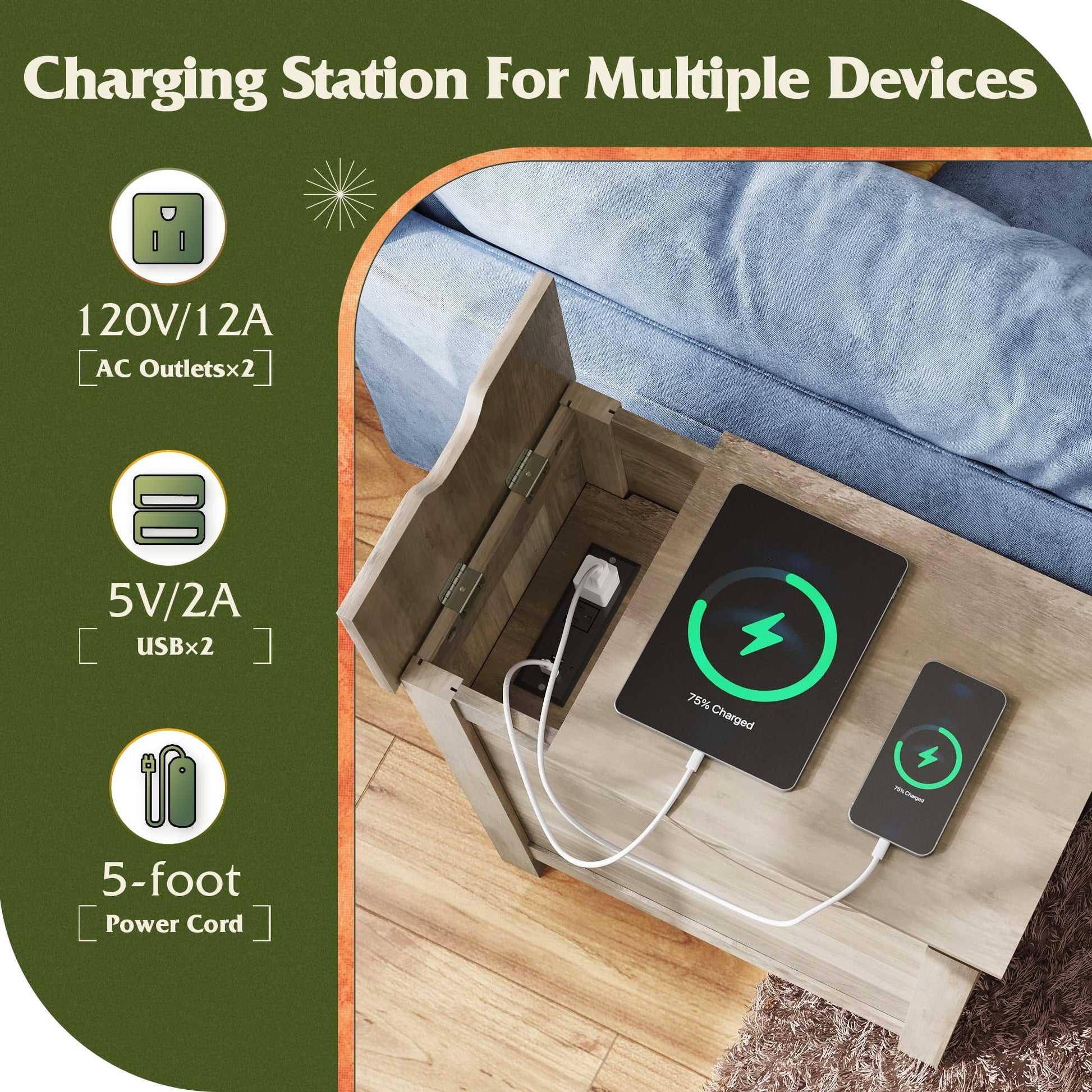 - [Charging Station]This Greige end table has 2 AC outlets and 2 USB ports, keeping power at your fingertips and never worrying about charging when you use your electronic devices on the couch.
